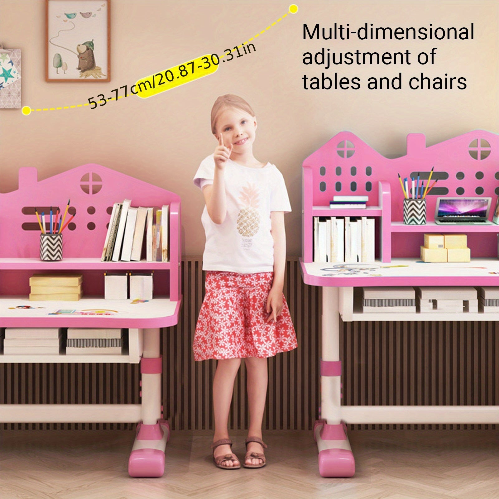 2 Piece Set 41.37*28.57*19.11 inch Multi Bookcase Wider Desktop Table and Chair Set Cartoon Pattern Children Adjustable Height Study Drawer Table with Chair Set