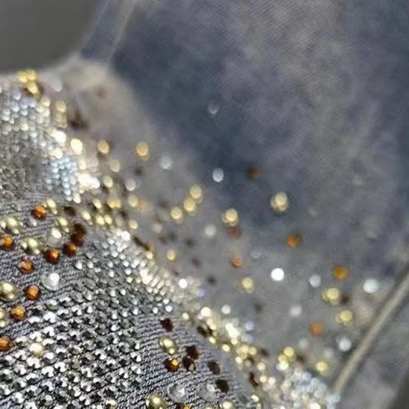 2025 Ladies Jeans Heavy Industry Rhinestone Skinny Jeans Women Spring Summer High Waist Denim Pants Korean Street Stretch Pants