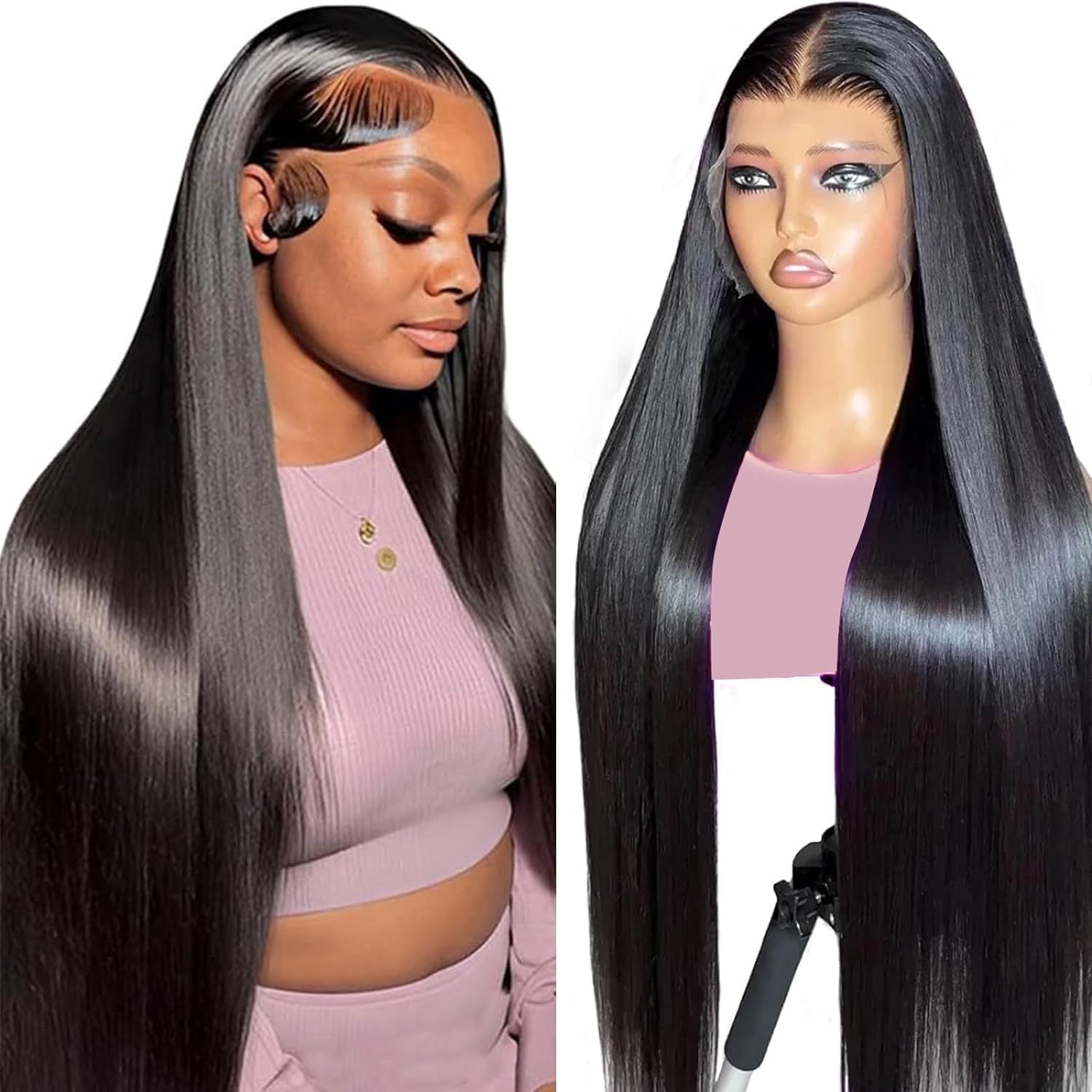 250% Density Straight Lace Front Wig Transparent HD 13x6 Straight Brazilian Virgin Human Hair Lace Frontal Wigs Pre Plucked With Baby Hair Black For Women 34Inch
