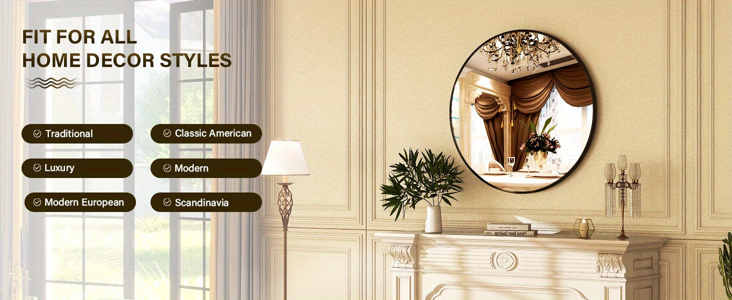 36 Inch Round Metal Wall Mirror Stylish Circle Mirror for Entryway, Bathroom, and Living Room Decor Matte Circle Wall Mirror