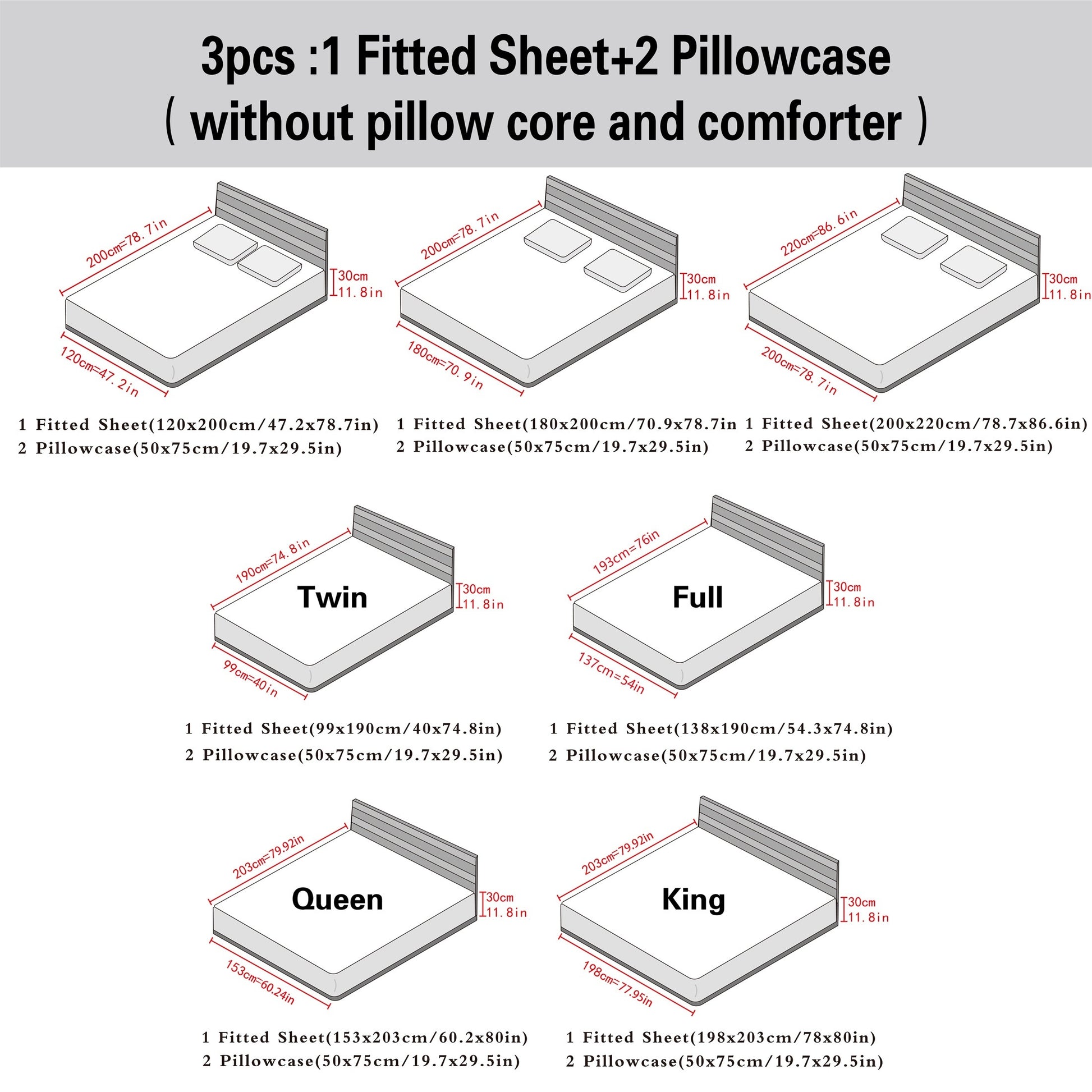 Fitted Sheet Height: 30-34cm