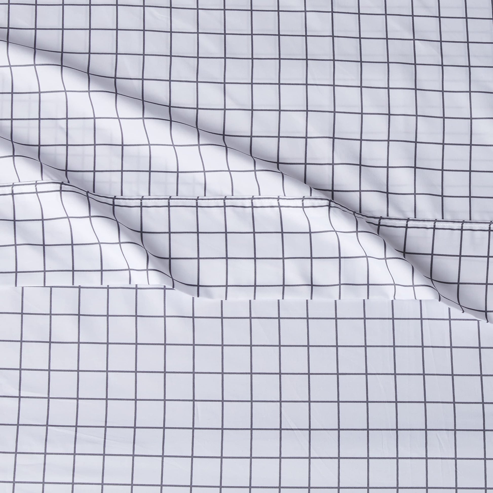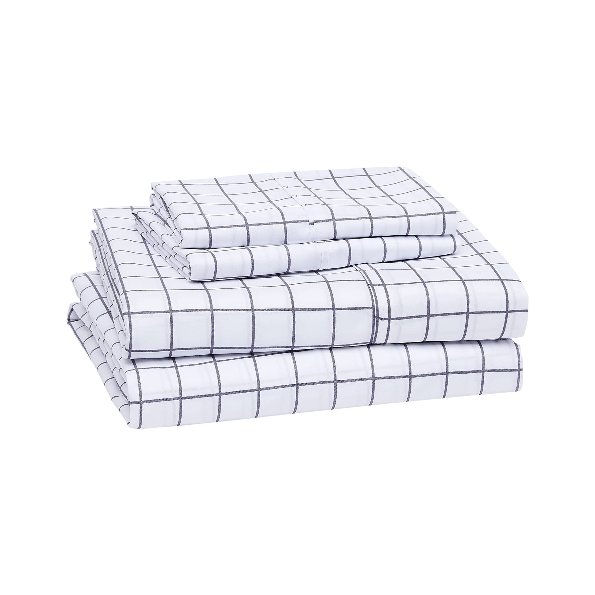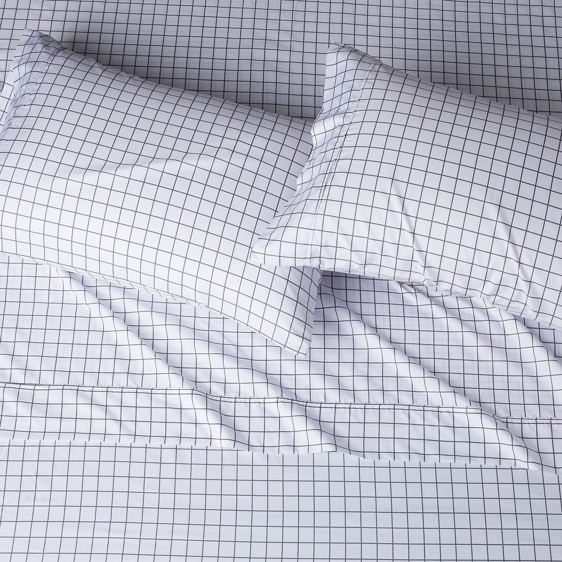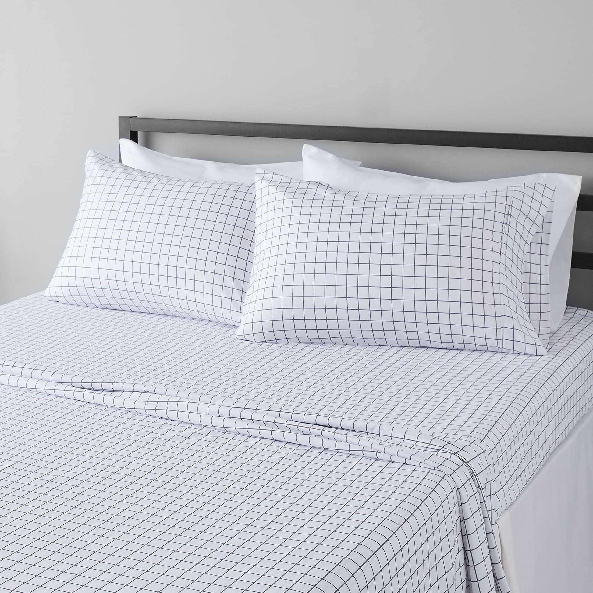 4-Piece Lightweight Super Soft Easy Care Microfiber Bed Sheet Set with14” Deep Pockets - Double / Full, Blue Gray Windowpane