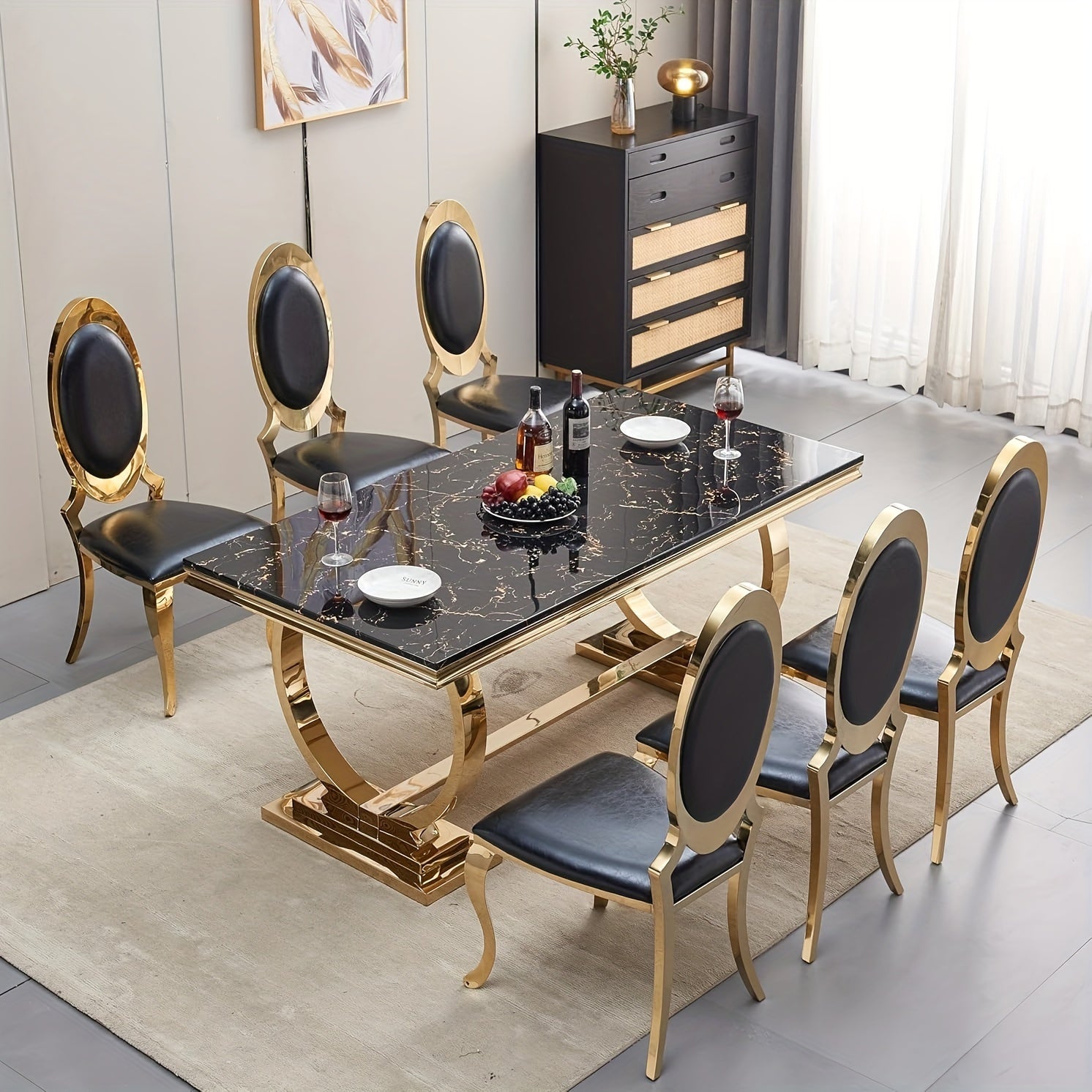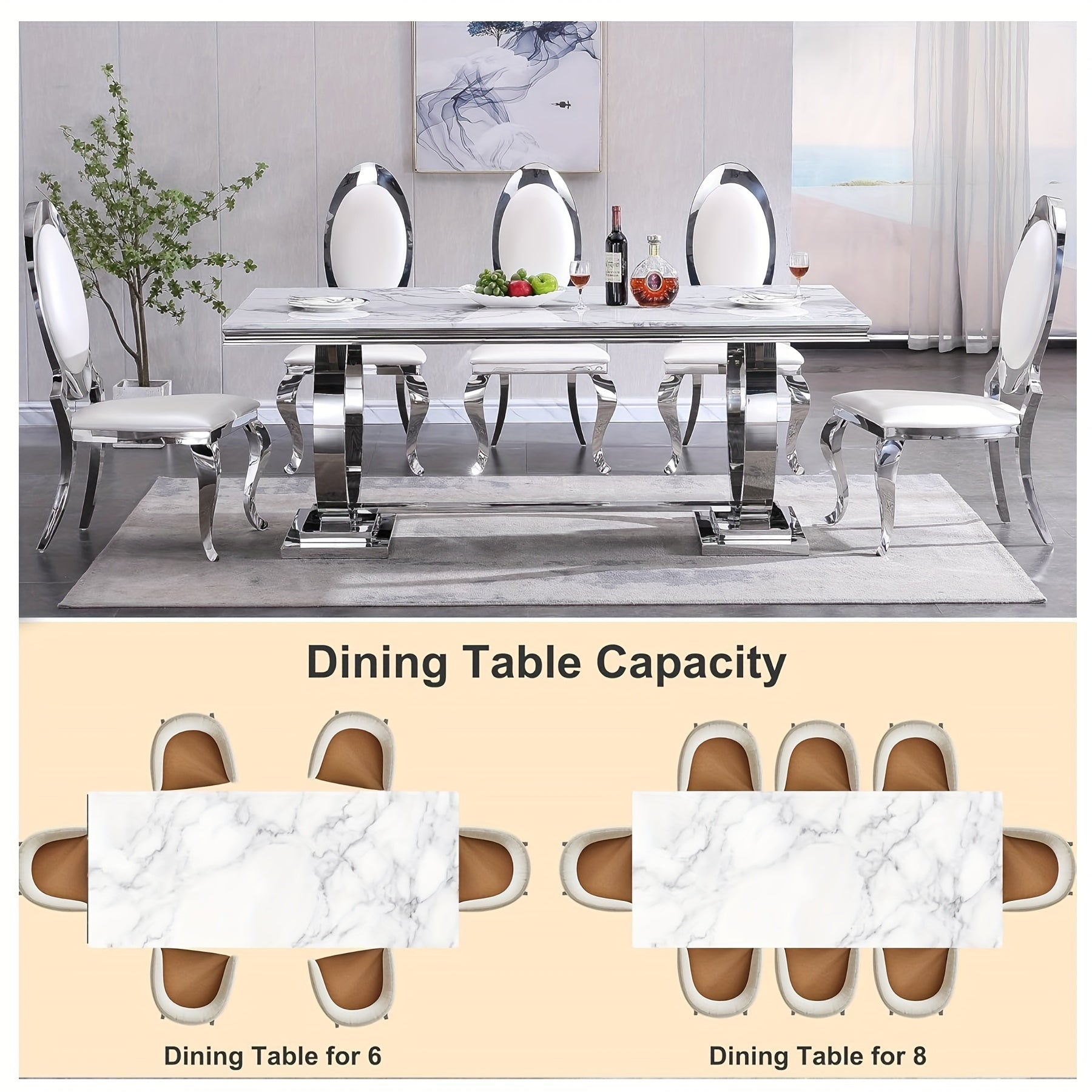 7-piece Luxury Dining Table And Chair Set, 70-inch Faux Marble Table With 6 Leather Chairs | Modern Dining Table Set For Kitchen, Restaurant And Hotel