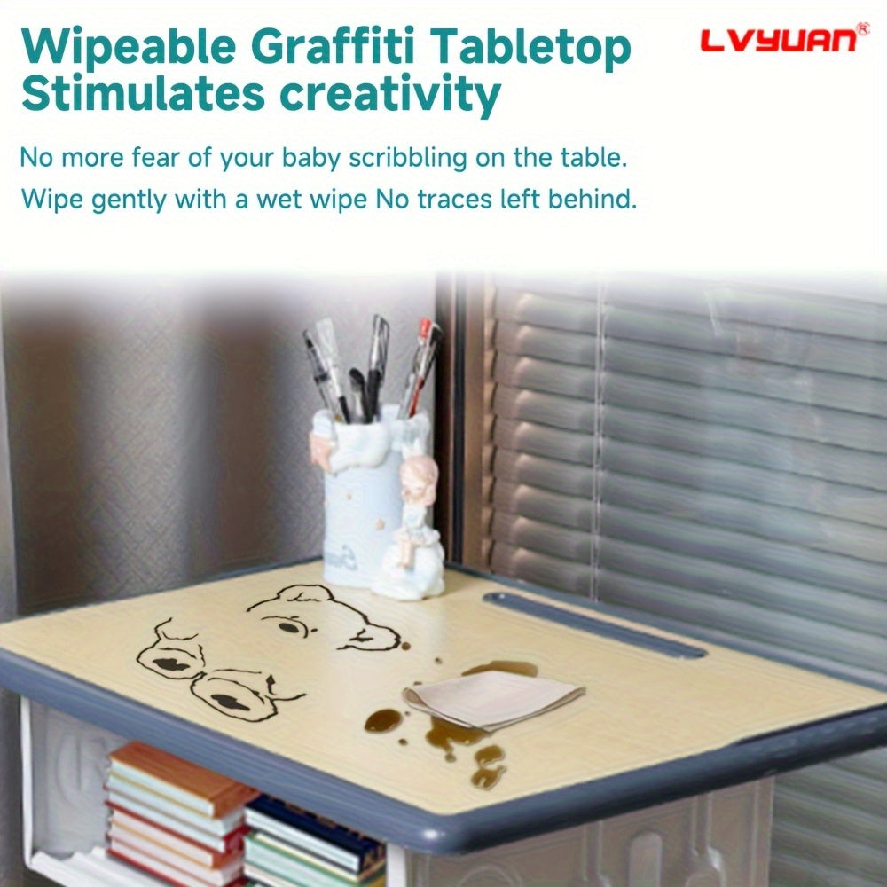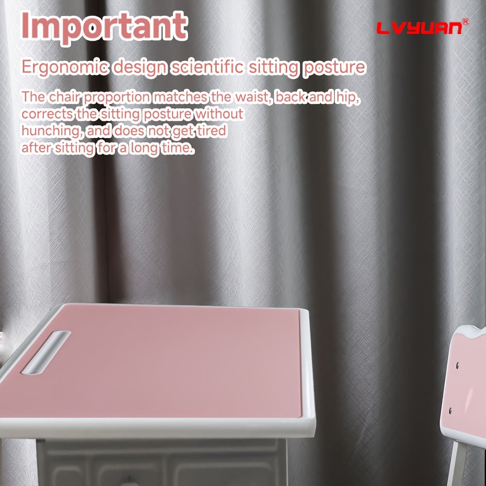 A Set Of High Quality Kids Table And Chair Set, Height Adjustable Children's School Study Table And Chair Set, Ergonomic Study Table Desk For Kids, Suitable For Children, Primary School Students And Teenagers Aged 3-18 Years