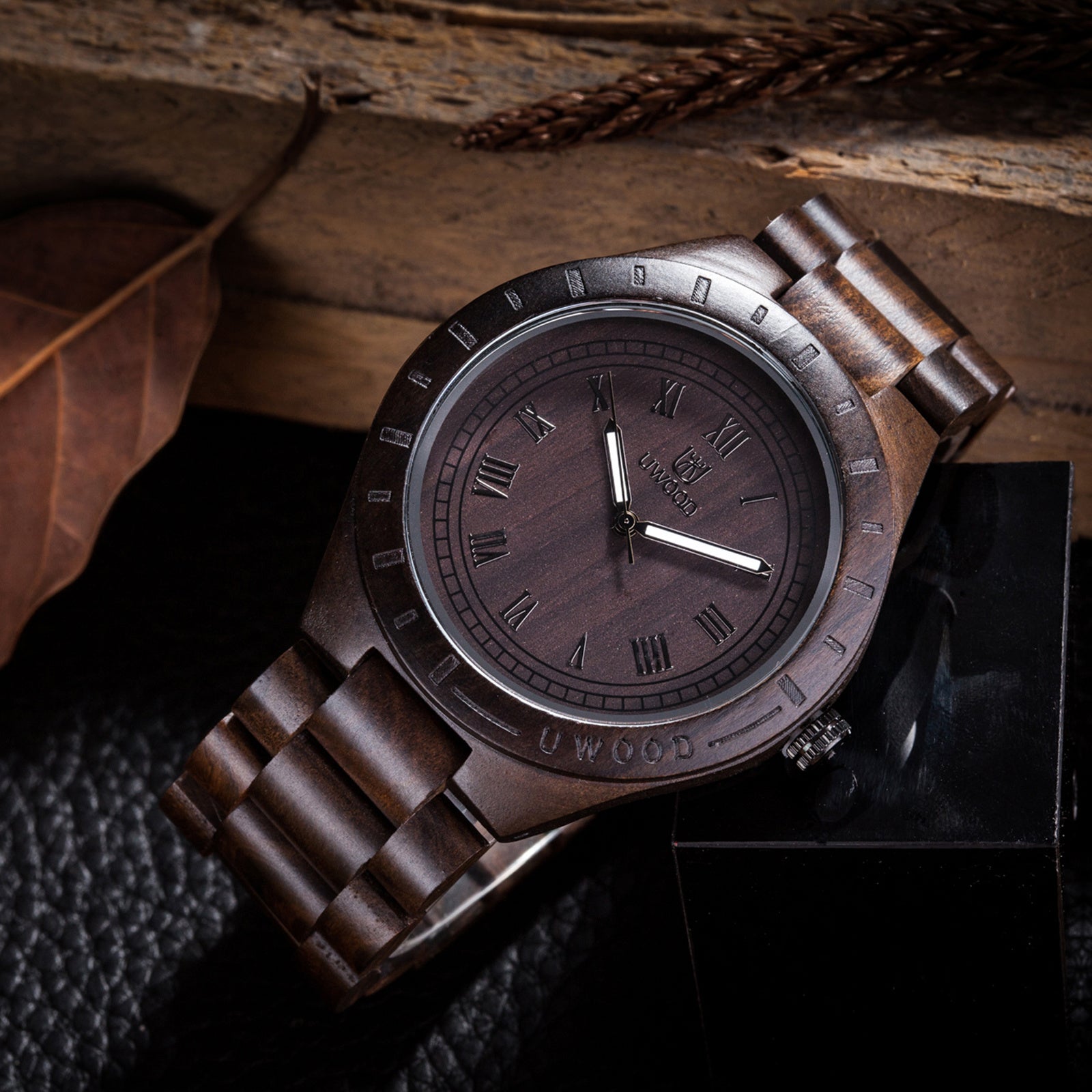 Black Sandal Solid Wooden UWOOD Mens Watch - Relogio Masculino Christmas Gift for Men
