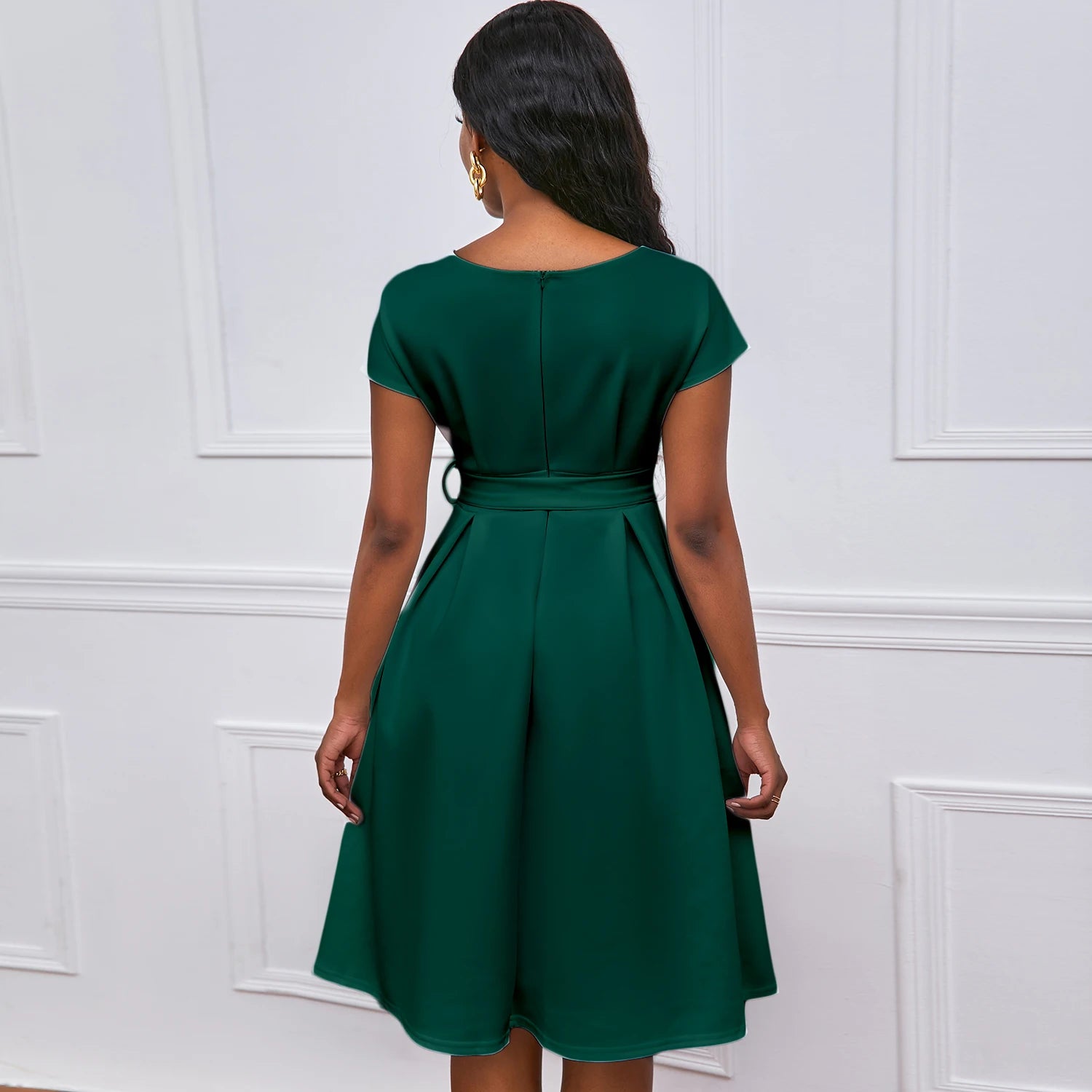 D207 Latest Design Bow Bandage Elegant Casual Dresses Ladies Office Dress Women Formal Work High Waist A-Line Evening Dresses