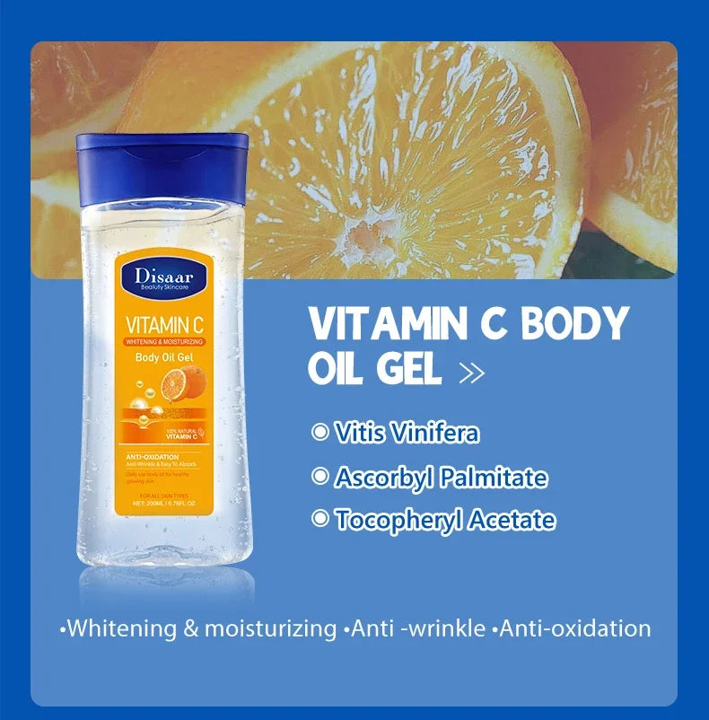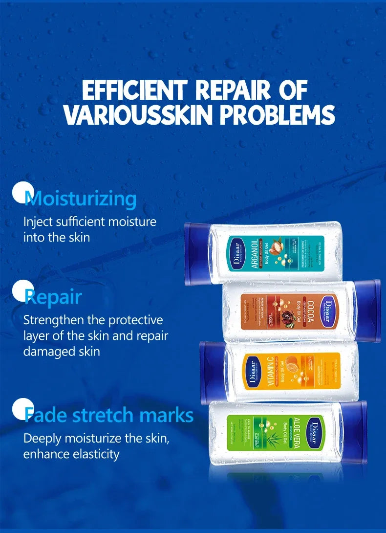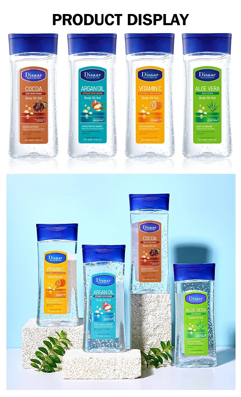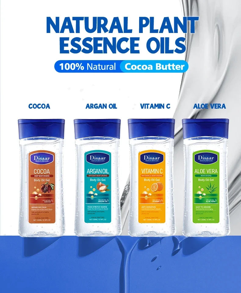Disaar 200ml Aloe Vera Extract Body Oil Smooth Skin Anti-wrinkle Vitamin C Essential Oil Moisturizing Cocoa Bean Skincare