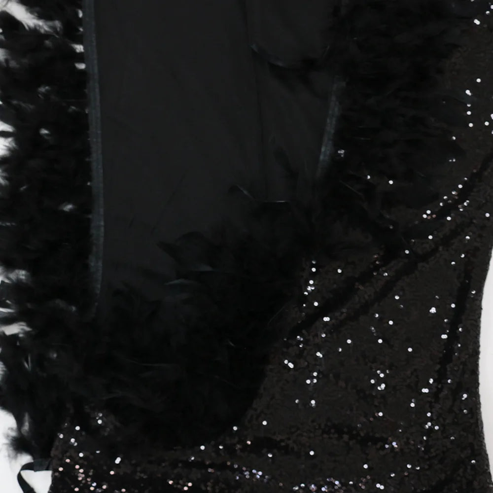 Dress Floor Length Dresses Women Party Gown Sequin Feather Hip Wrap Sexy Slim Fit Vestidos Sleeveless V Neck Backless Evening