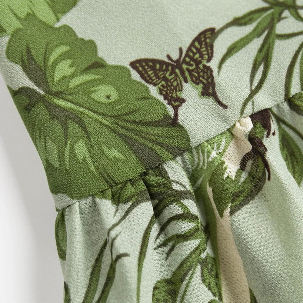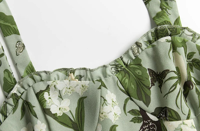 Dresses For Women 2021 Party Elegant Ruffle Hem Beach Summer Dress Sweetheart Neck Tie Strap Tropical Print Chiffon Midi Dress