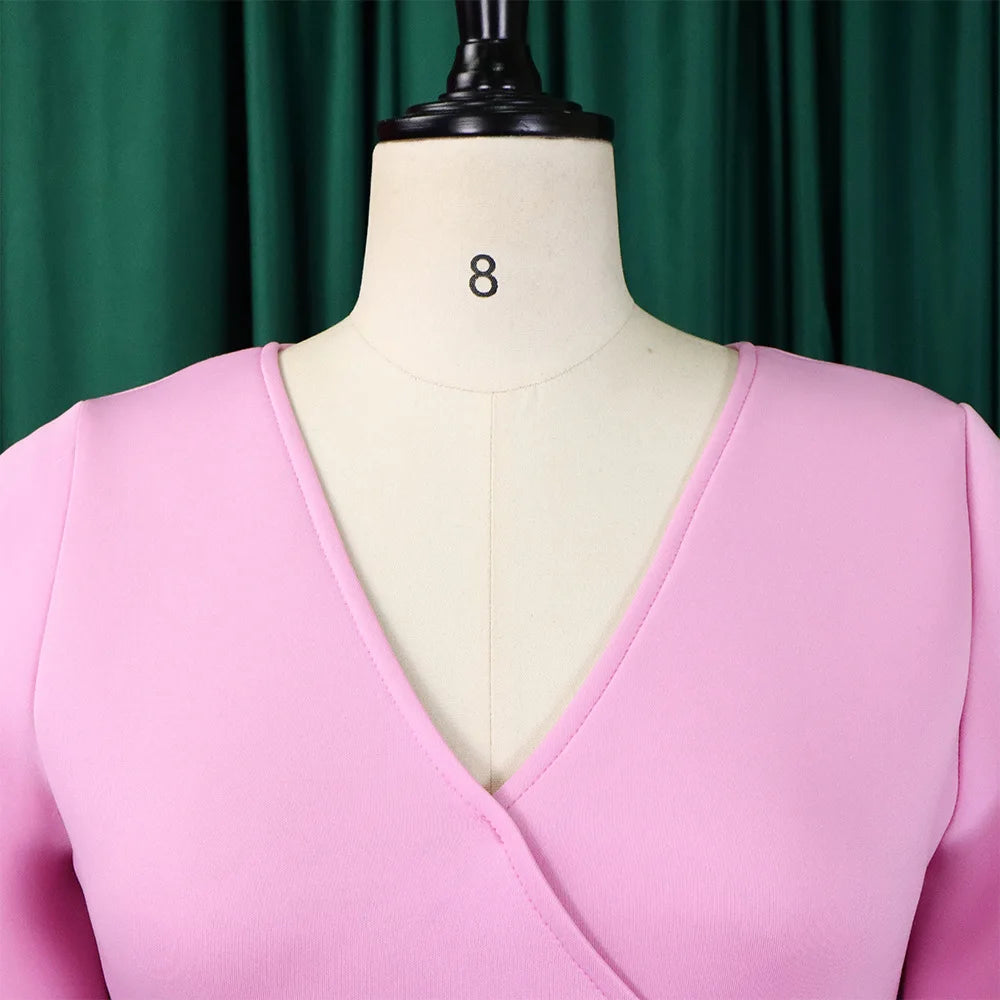 Elegant Party Dresses for Women V Neck Ruffles Sleeve High Waisted Pleated Mid Calf Luxury Birthday Dinner Vestidos Mujer Dress