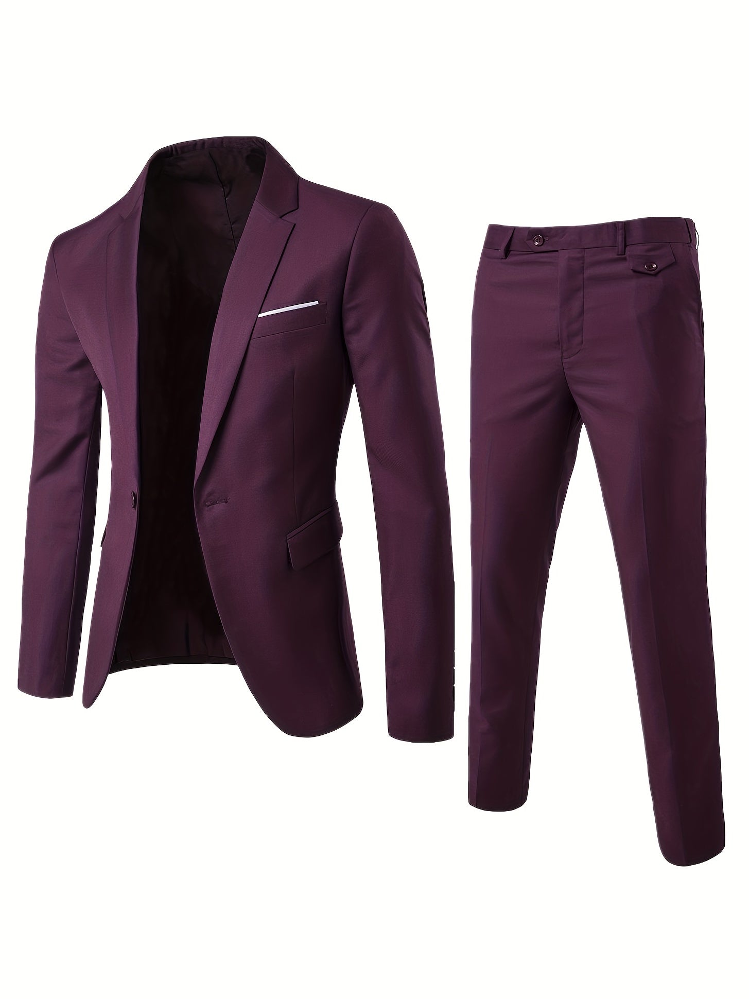 Formal 2 Pieces Set, Men's One Button Suit Jacket & Dress Pants Suit Set For Business Dinner Wedding Party