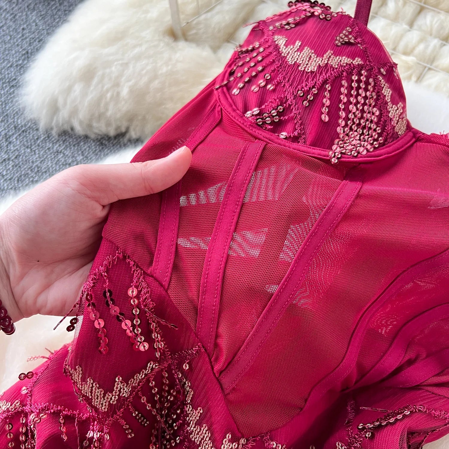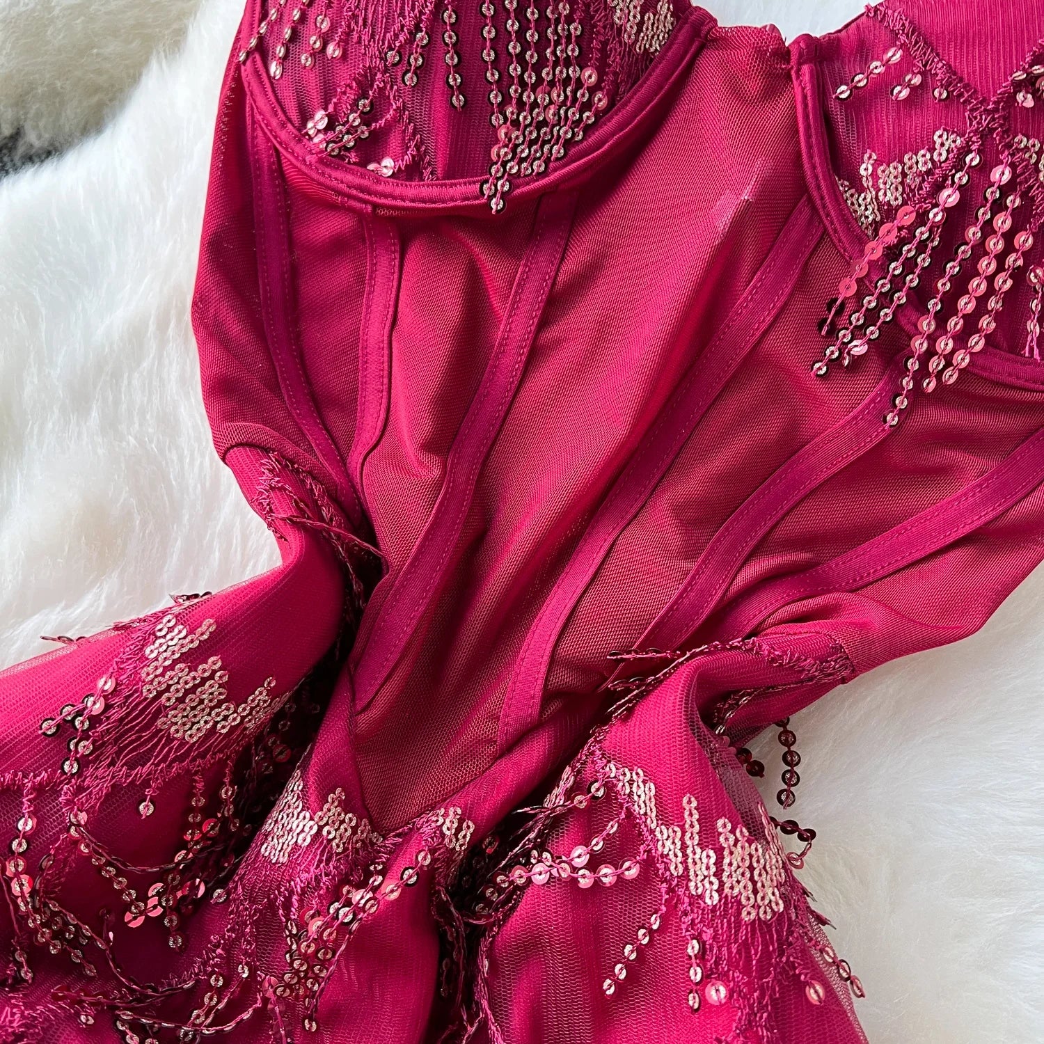 Fringe Corset Dress Strap Wave Sequin Mermaid Trumpet Evening Dresses Ladies
