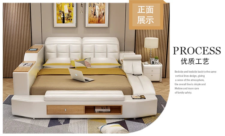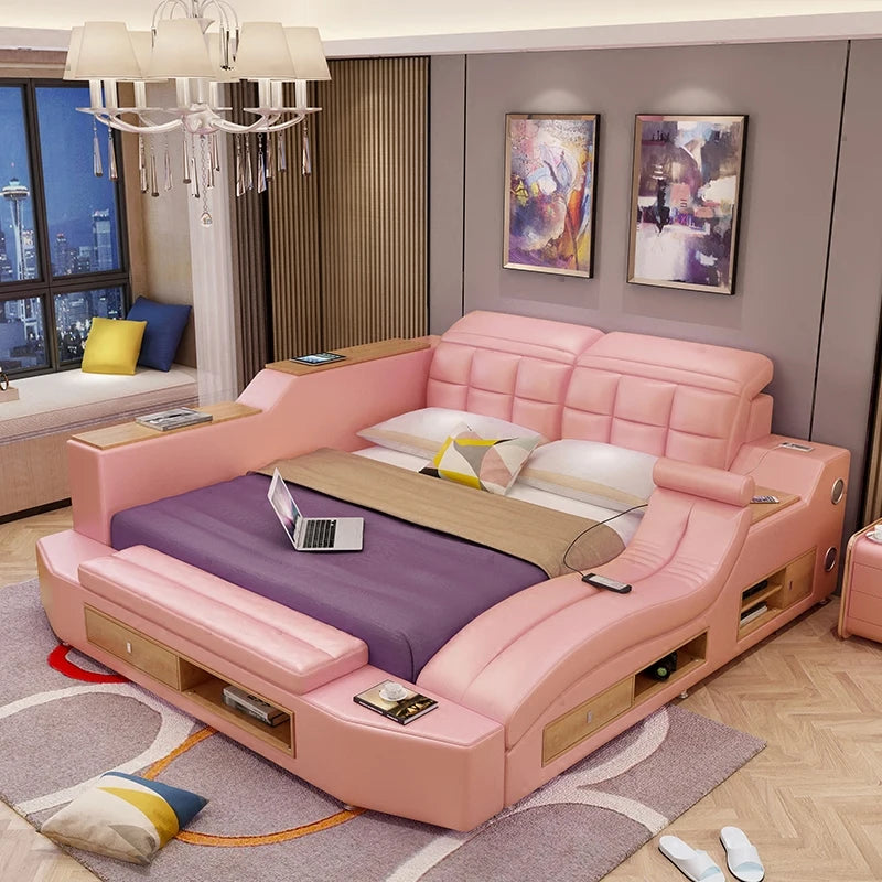 Genuine Leather multifunctional massage bed frame modern Nordic camas ultimate bed кровать двуспальная lit beds سرير muebles de