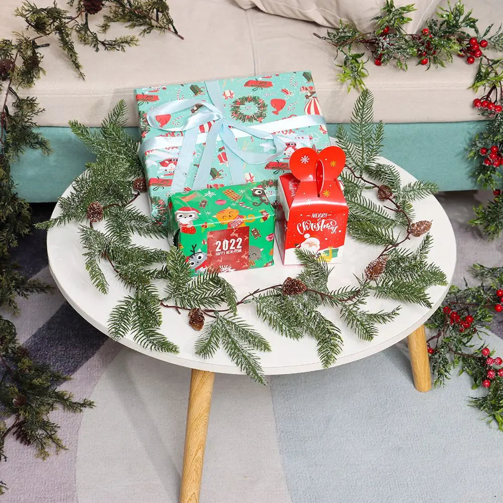 Gift Xmas Tree Ornament Leaves Branches Artificial Red Berries Christmas Decorative Garland Pine Cones Vine Hanging Wreath