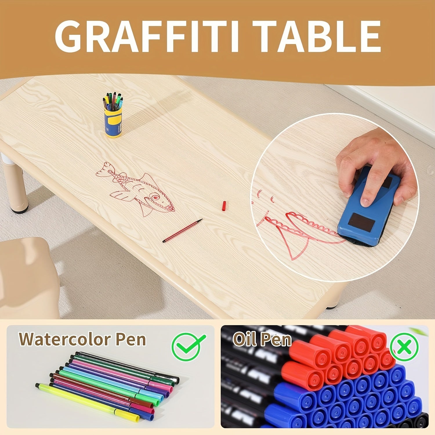 Height-Adjustable Table and Chair Set with 2 Chairs, Graffiti-Friendly Surface, Plastic, Multi-Color, Ideal for -8 Years - Interactive Play and Learning Furniture for Classroom, Daycare, or Home Use