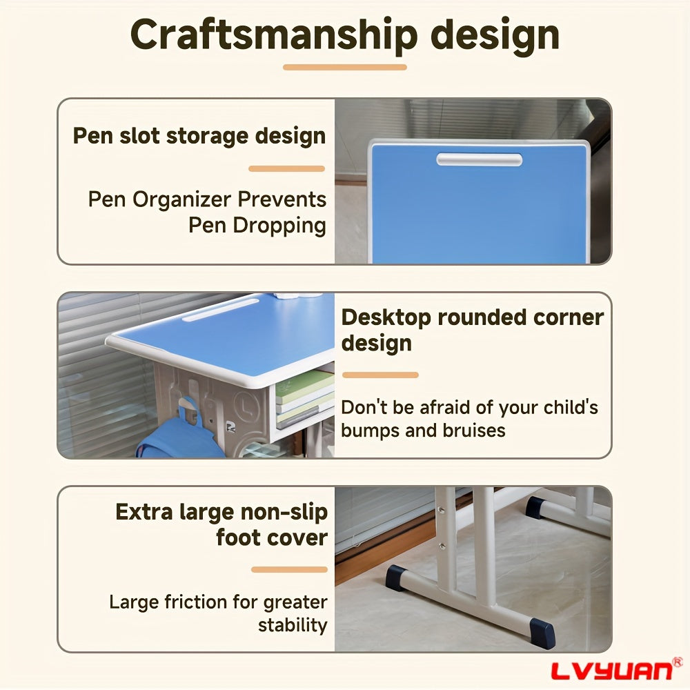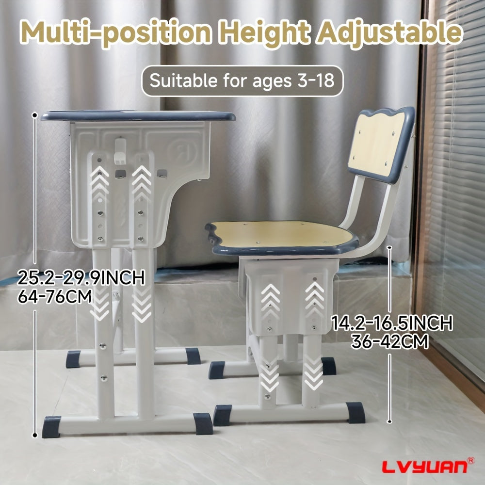 High-quality Children's Table And Chair Set, Height-adjustable Children's Study Table And Chair Set, Ergonomic, Suitable For Children Aged 3-18 Years, Primary School Pupils And Teenagers, Grey, Blue And Pink Colours Available