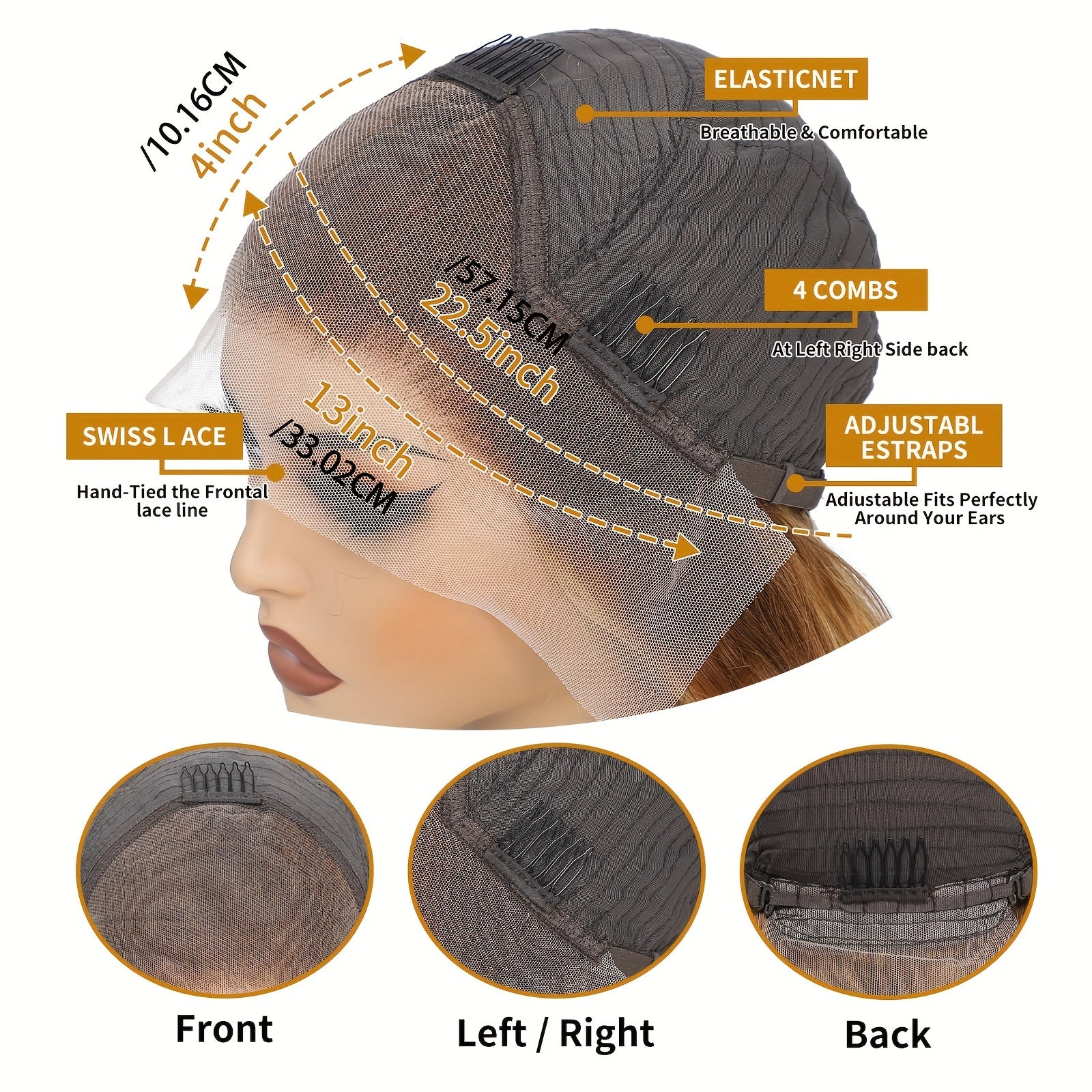 Highlight Ombre 13x4 Lace Front Wig Human Hair Pre Plucked HD Transparent 4/27 Honey Blonde Lace Frontal Wigs With Baby Hair 200% Density Colored Water Wave Lace Front Wig Human Hair For Women