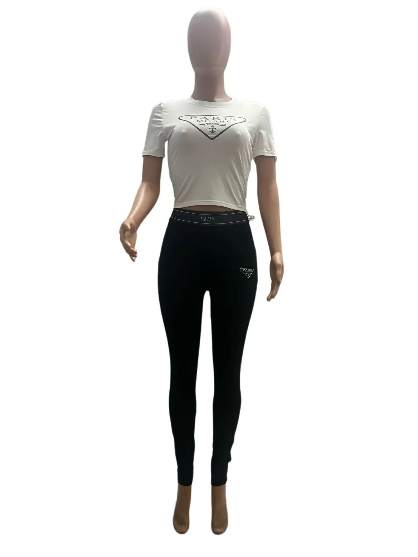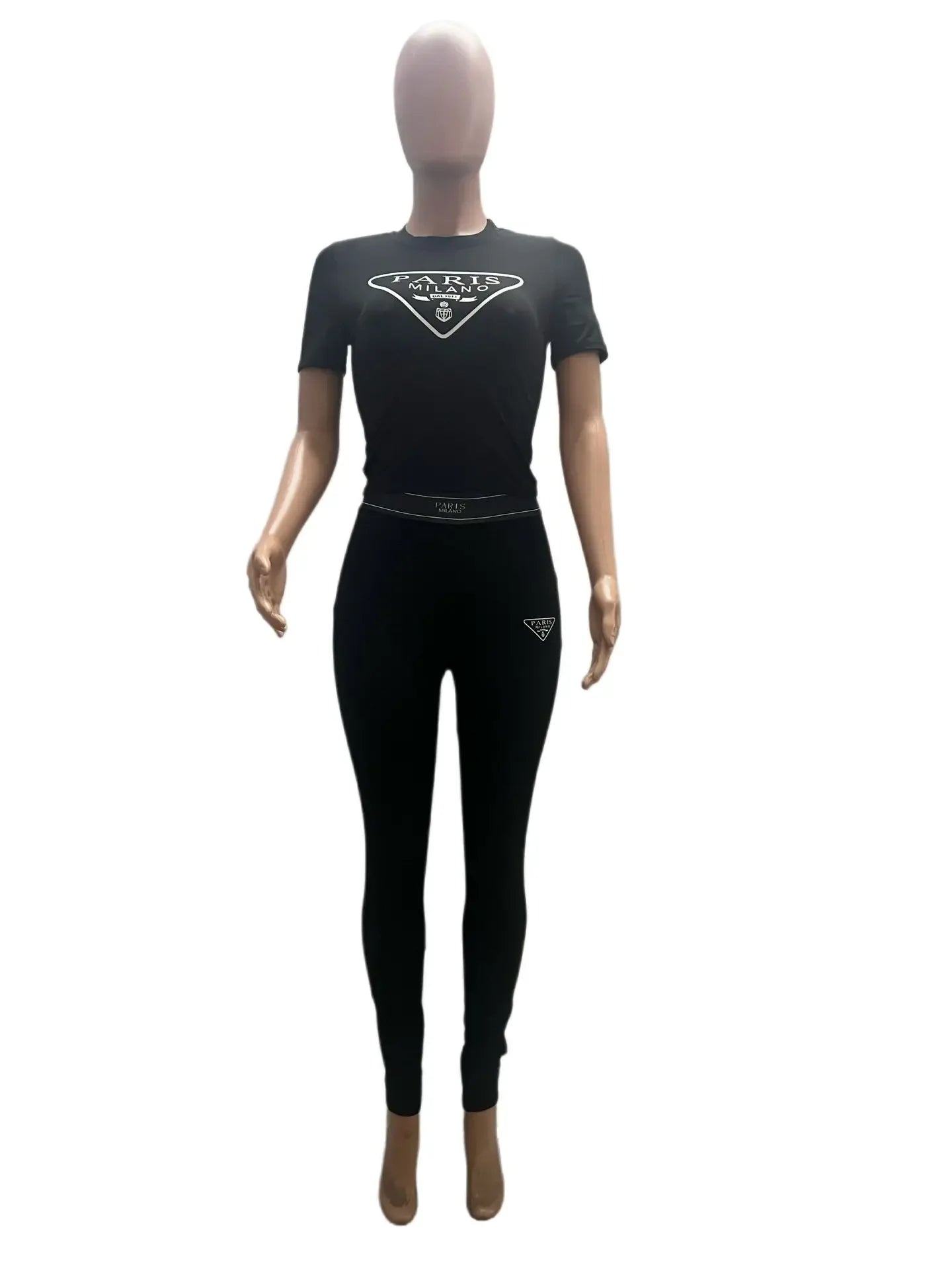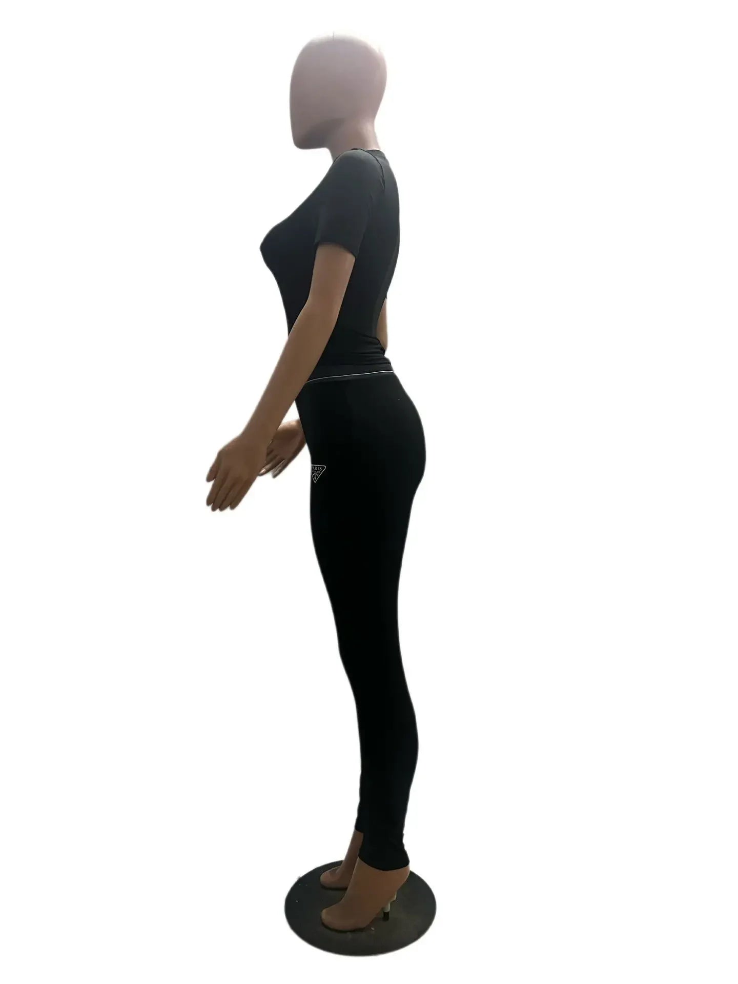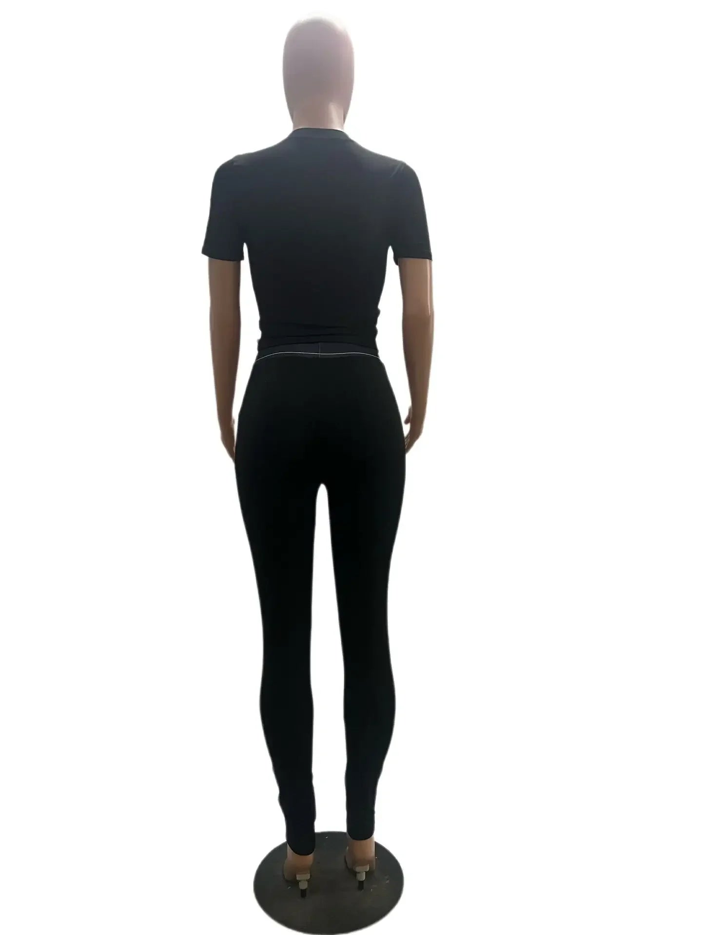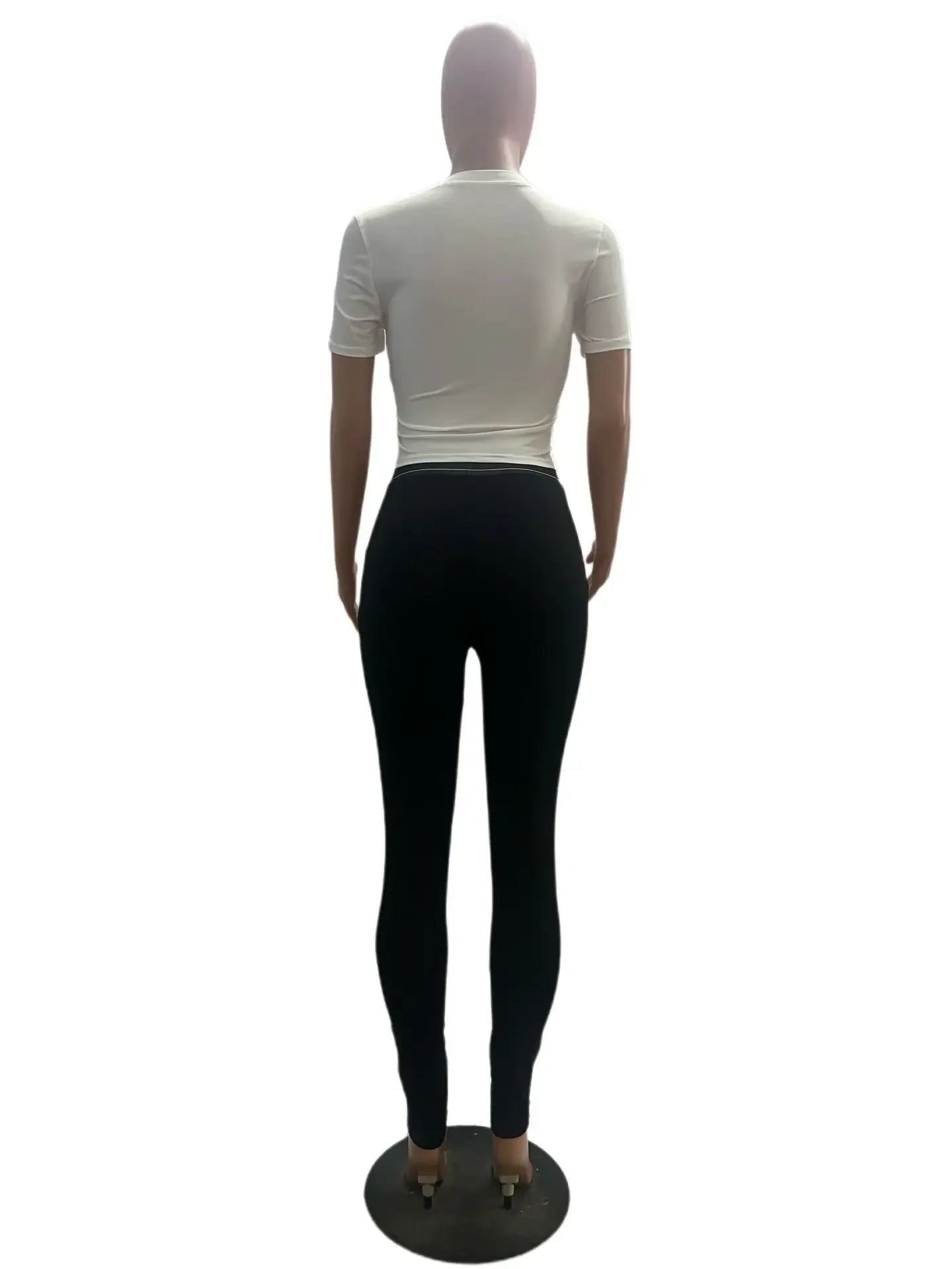 HLJ Fashion Streetwear Women Letter Print Short Sleeve Top And Skinny Pants Two Piece Sets Casual Matching 2pcs Outfits 2023 New