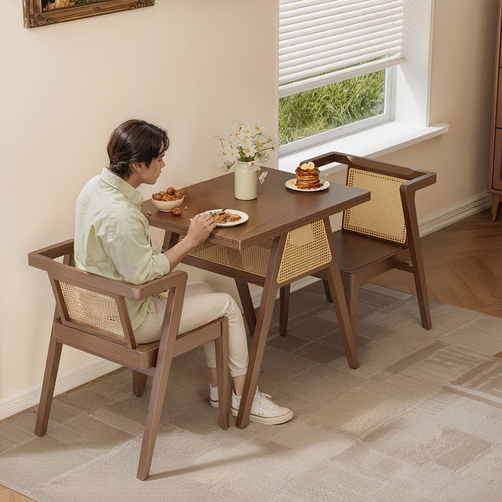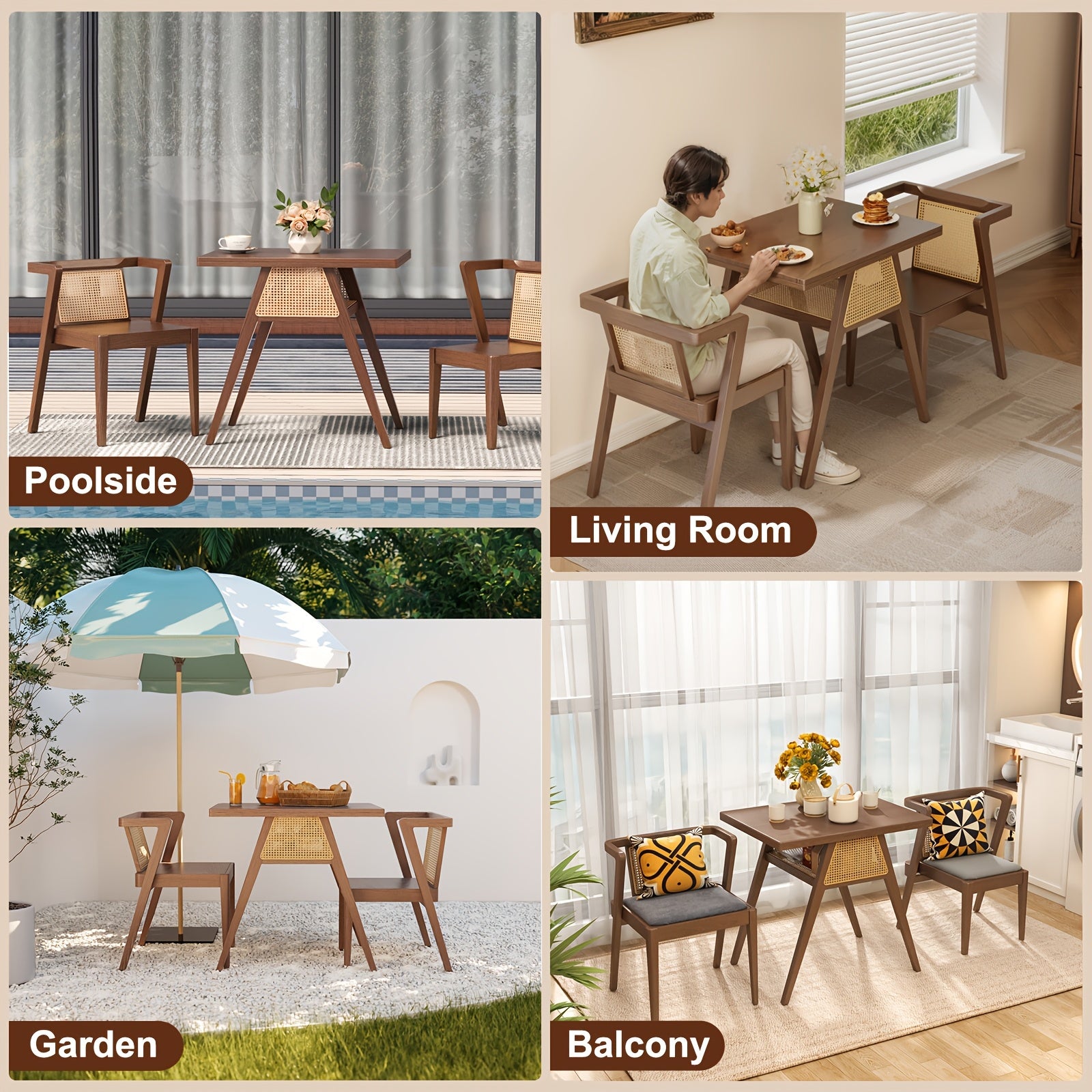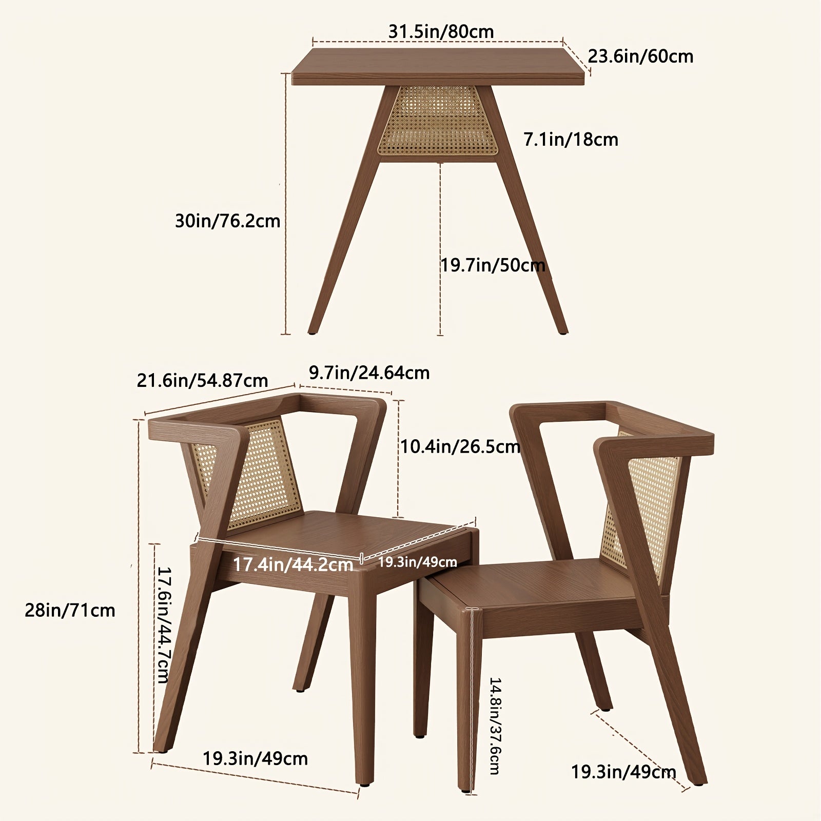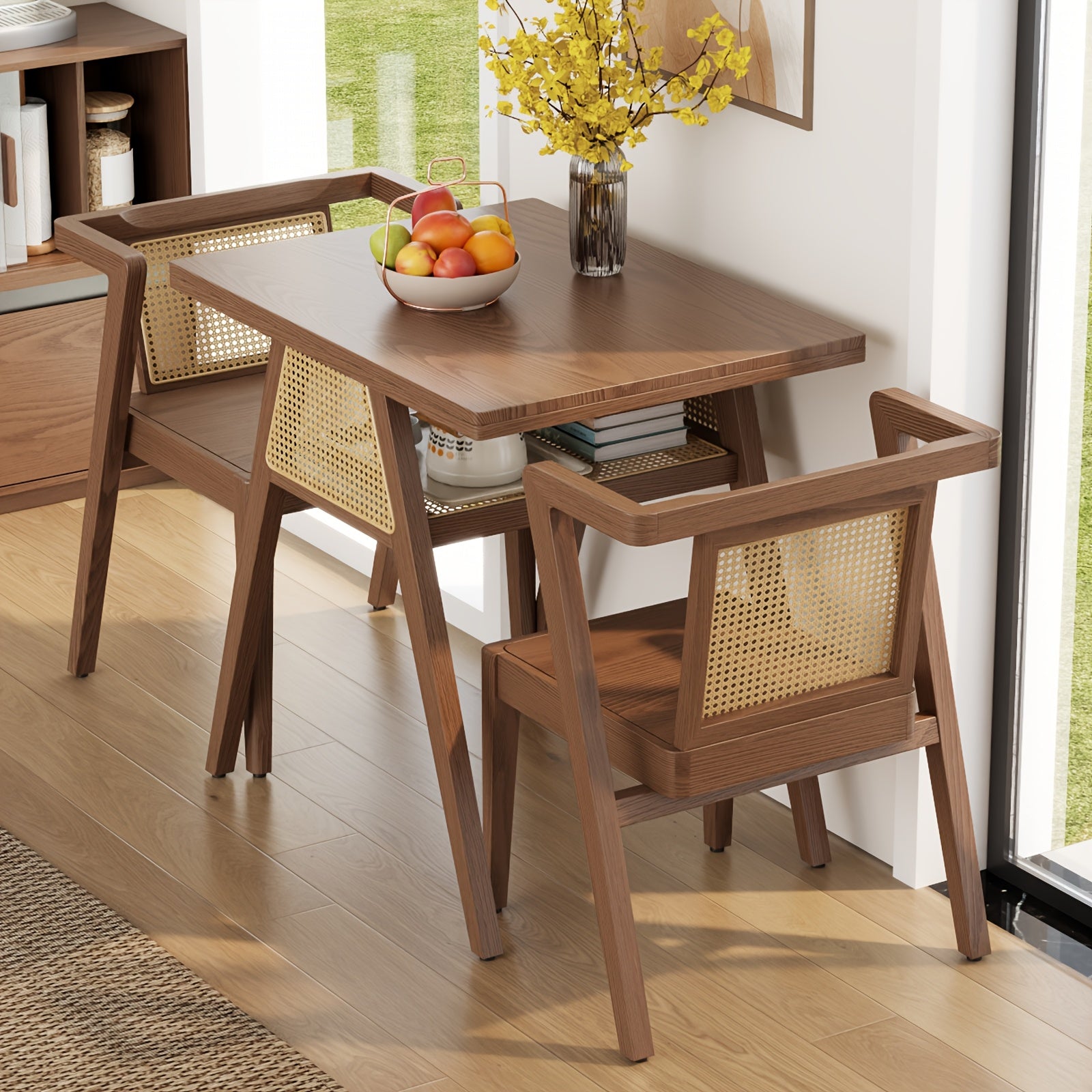 KASLANDI Furniture For Home Small Dining Table Set For 2, Wood Small Kitchen Table For 2 Square, 3pcs Dining Table Set For Dining Room, Living Room, Apartment, Indoor, Walnut, Modern Minimalist Furniture Table And Chair Set