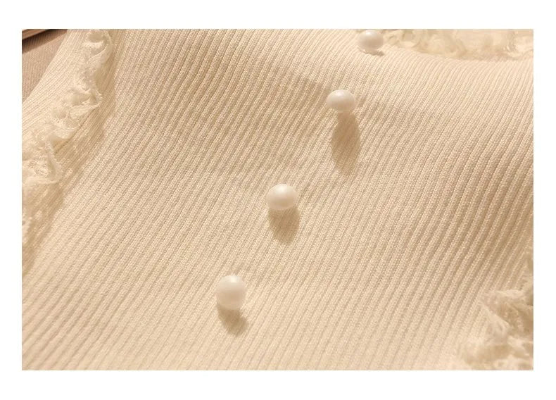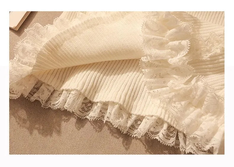 Korean Lace Patchwork Crop Top Women U-Neck Knitted Stretch Tank Top 2025 Summer Female White Lace Stretch Cami