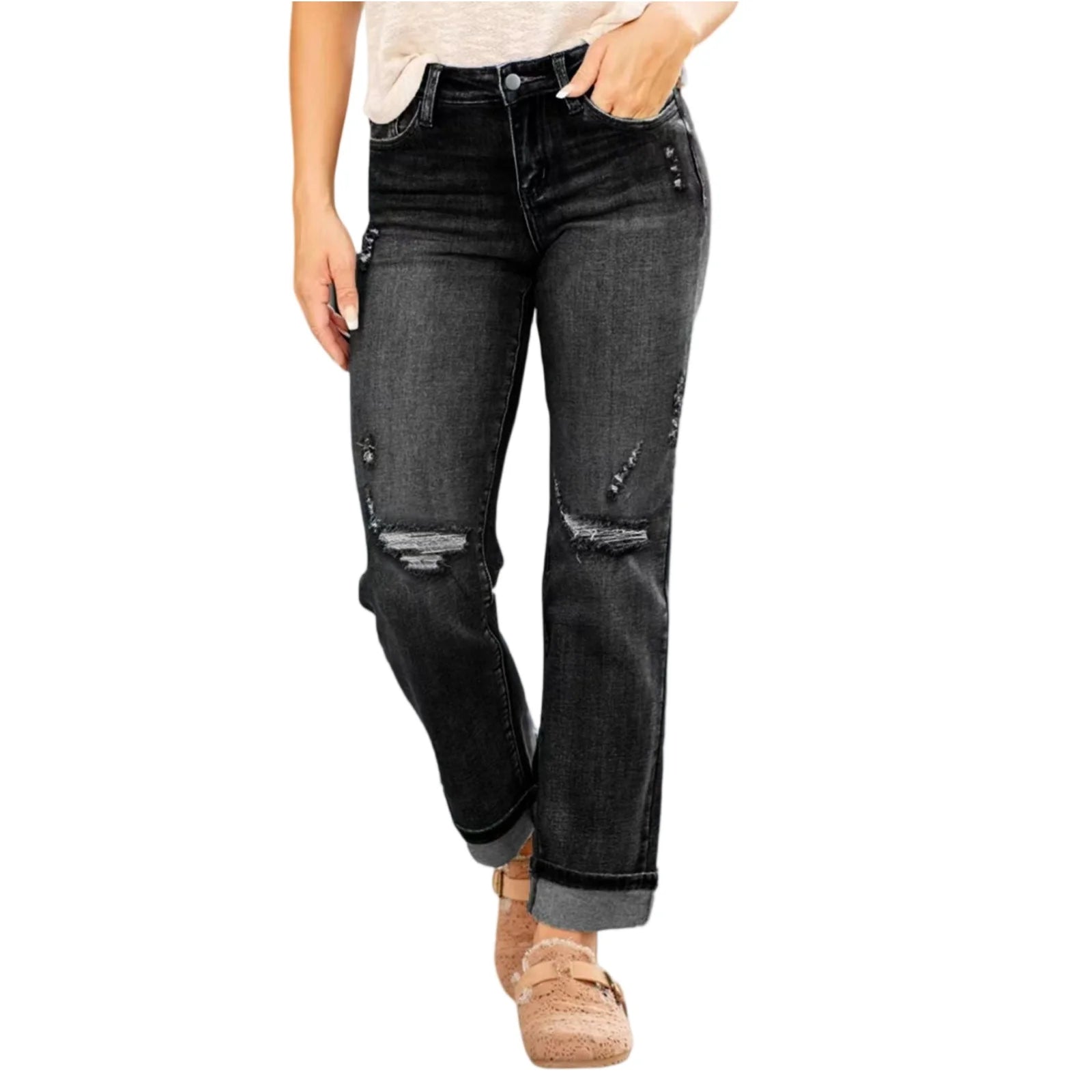 Ladies' Jeans Trend Casual Fashion Straight Leg Ripped Denim Cropped Pants Denim Pants Trend Streetwear Fashionable Casual Wear