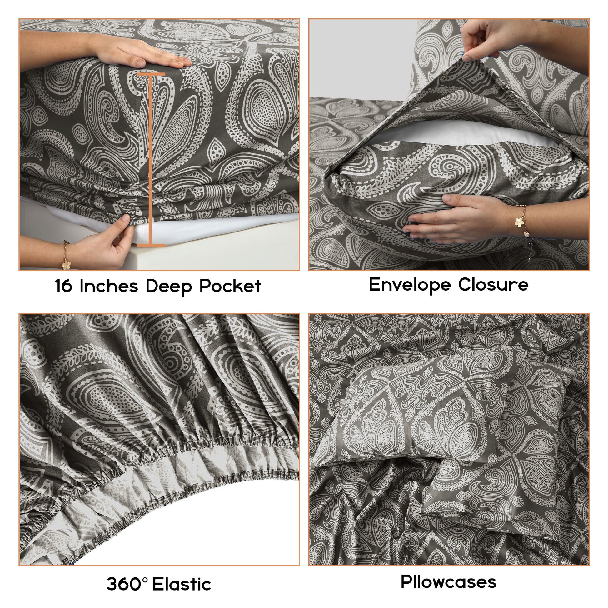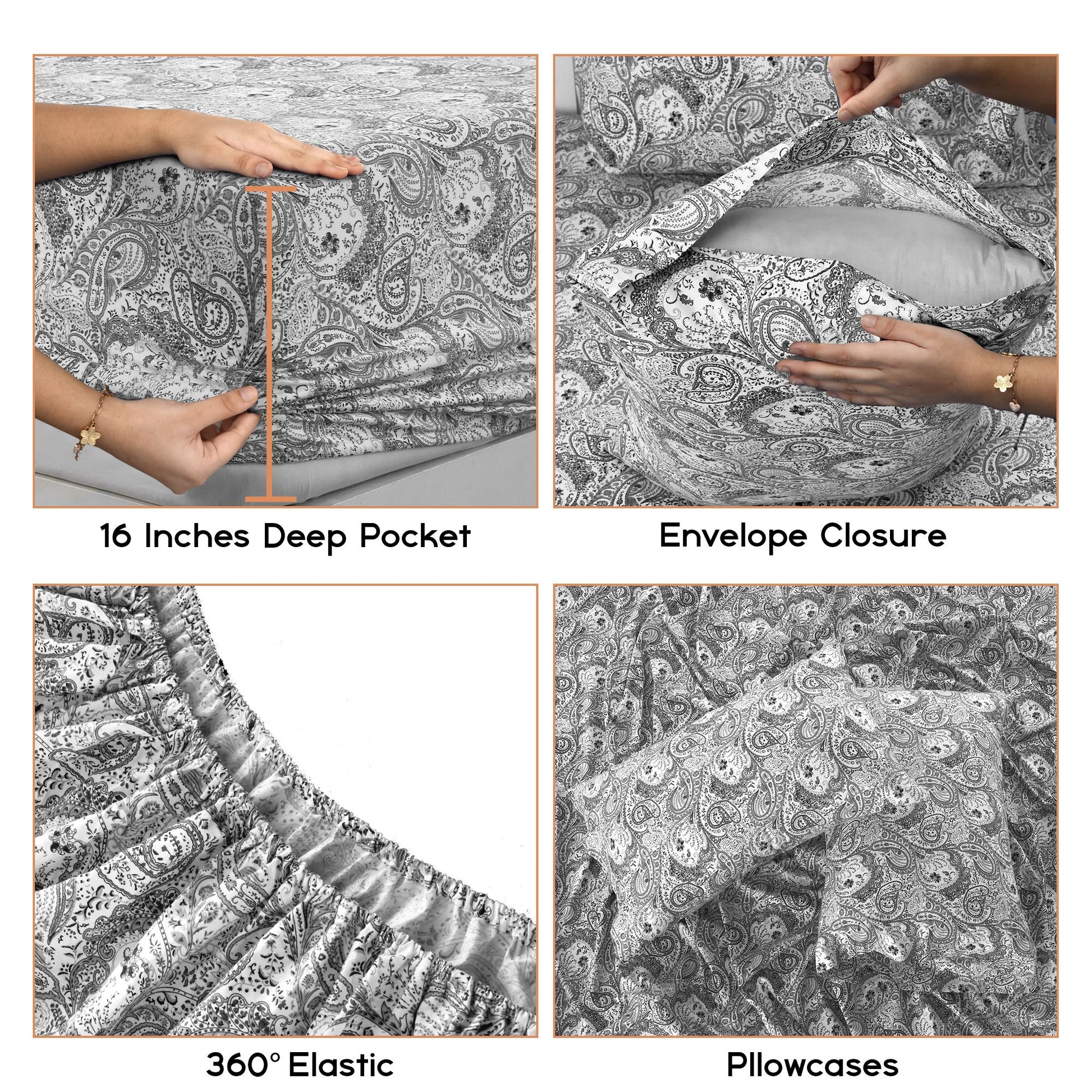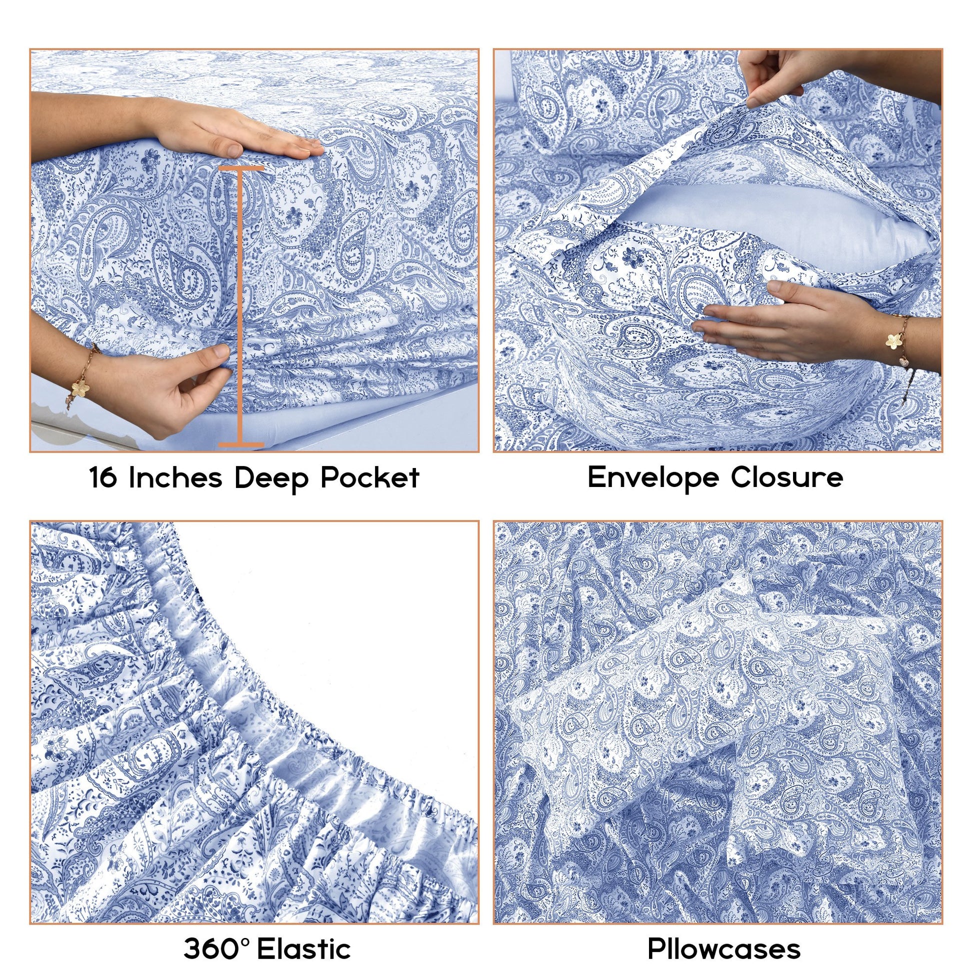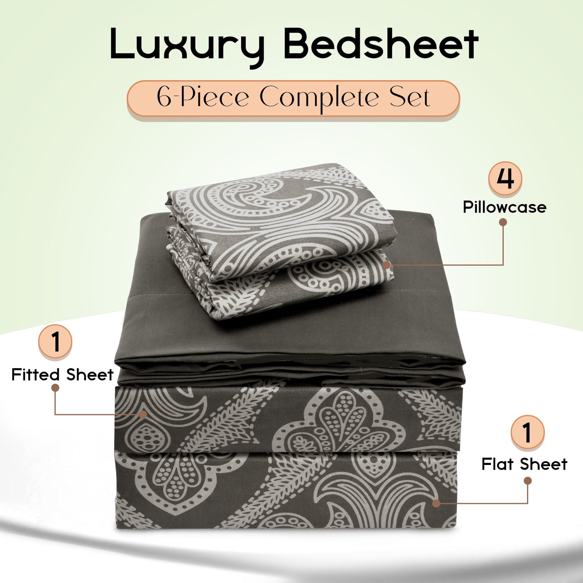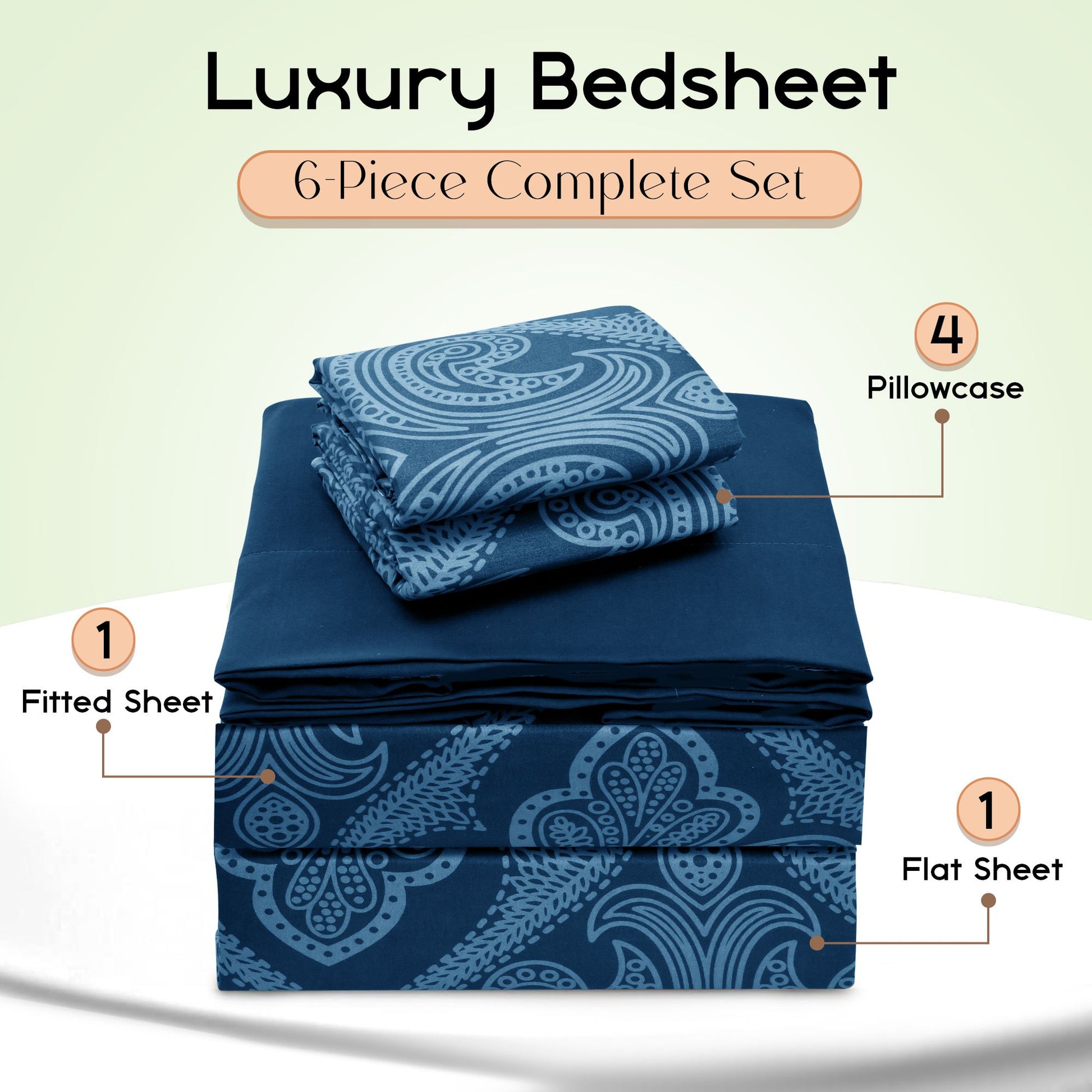 Lux Decor 6 Pieces Paisley Bed Sheet, Breathable Hotel Style Sheets, Microfiber Sheets Deep Pockets, Easy-Fit, Soft & Wrinkle Free Oeko-Tex Cooling Bed Sheets