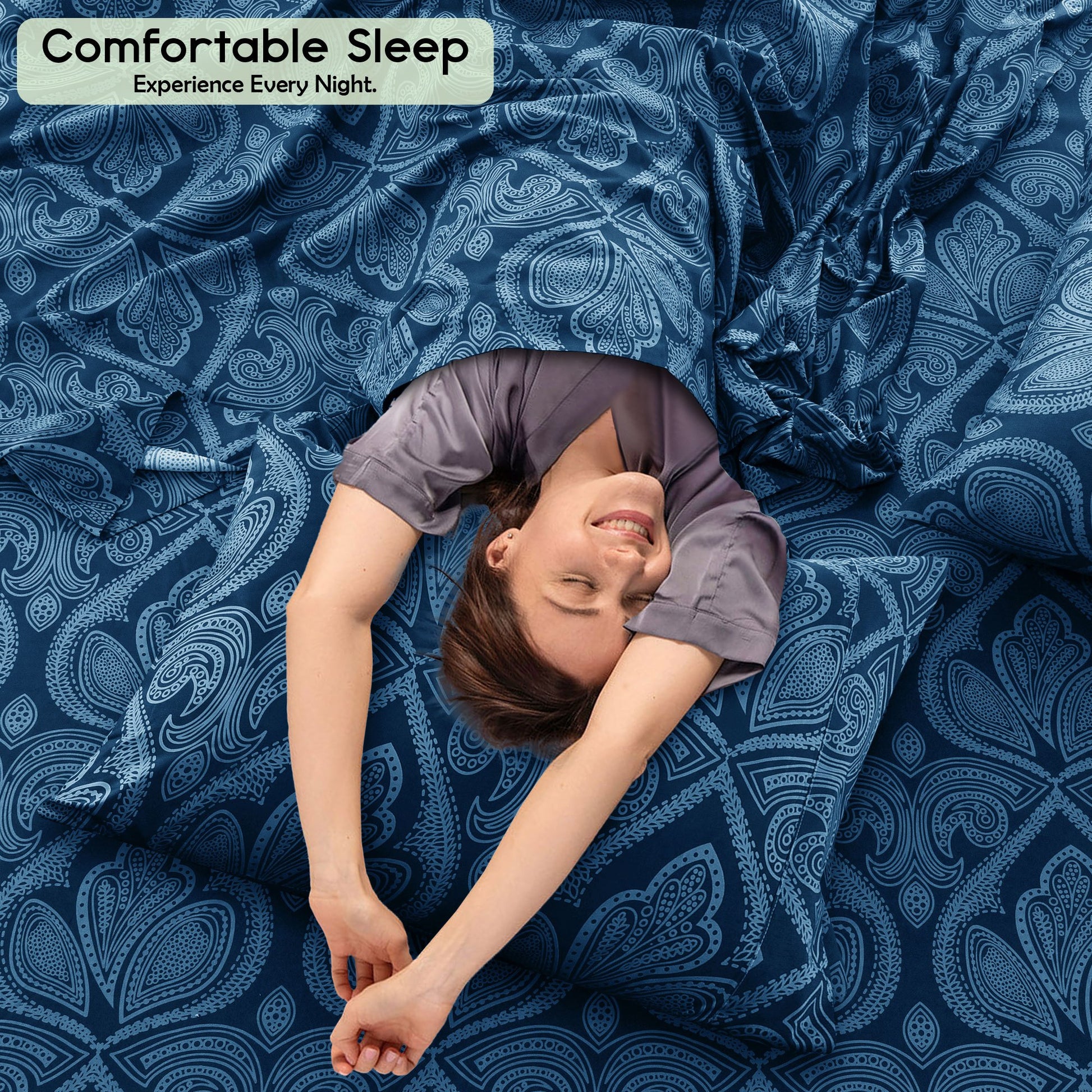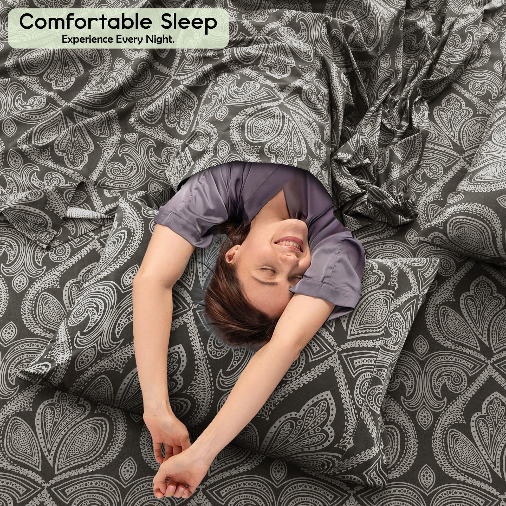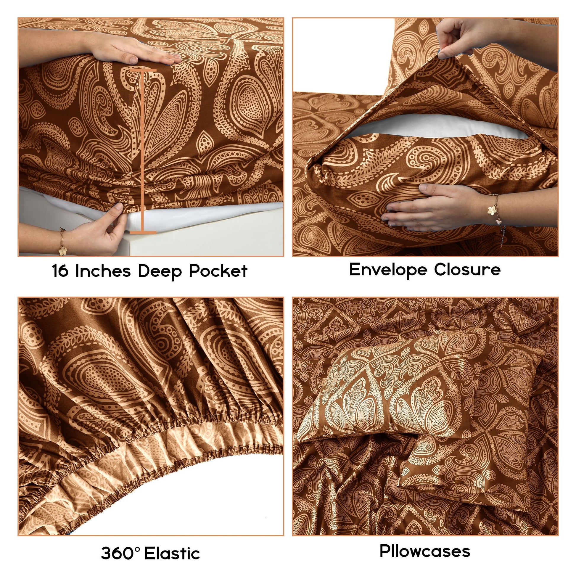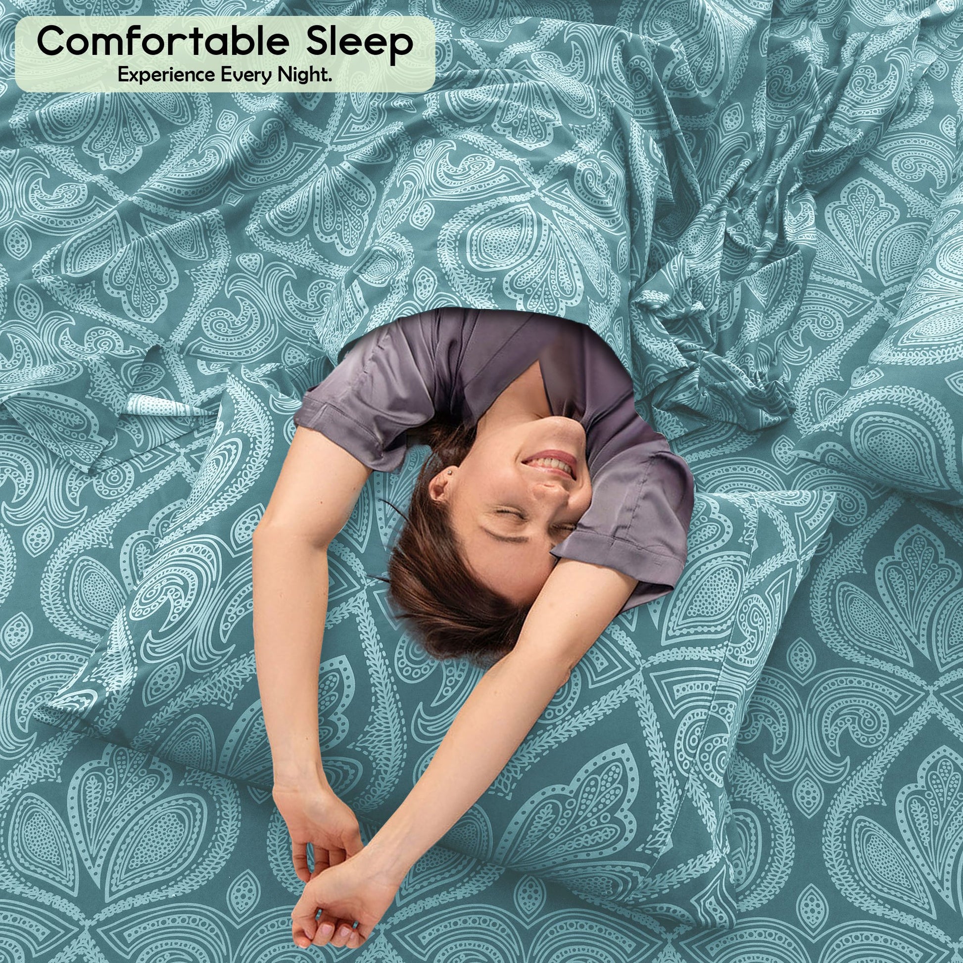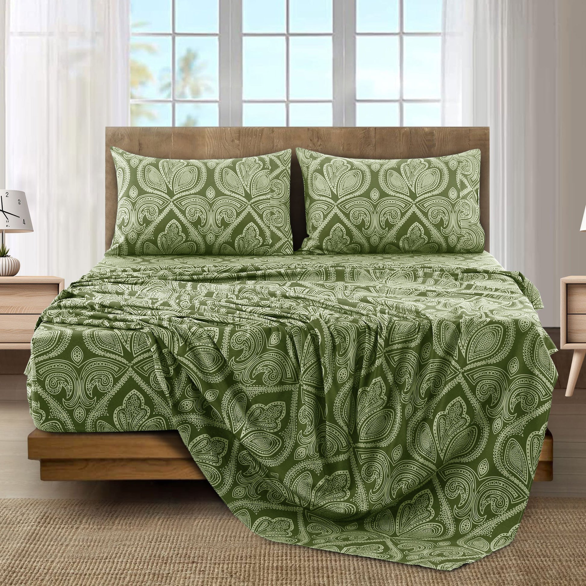 Lux Decor 6 Pieces Paisley Bed Sheet, Breathable Hotel Style Sheets, Microfiber Sheets Deep Pockets, Easy-Fit, Soft & Wrinkle Free Oeko-Tex Cooling Bed Sheets