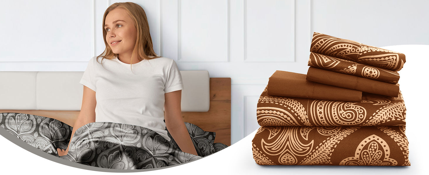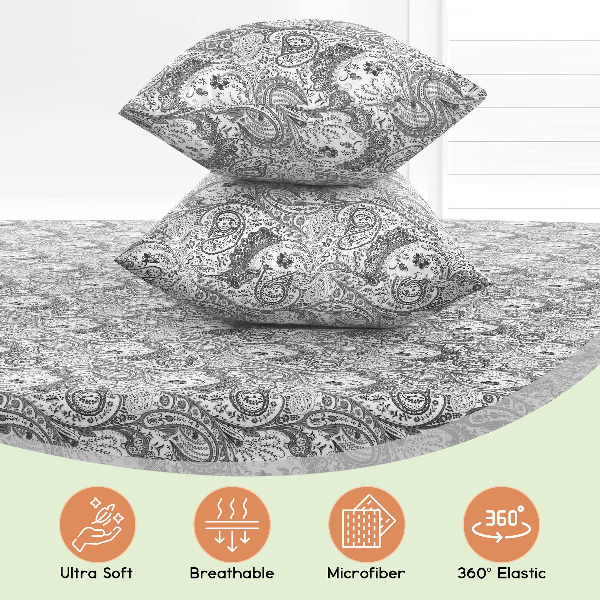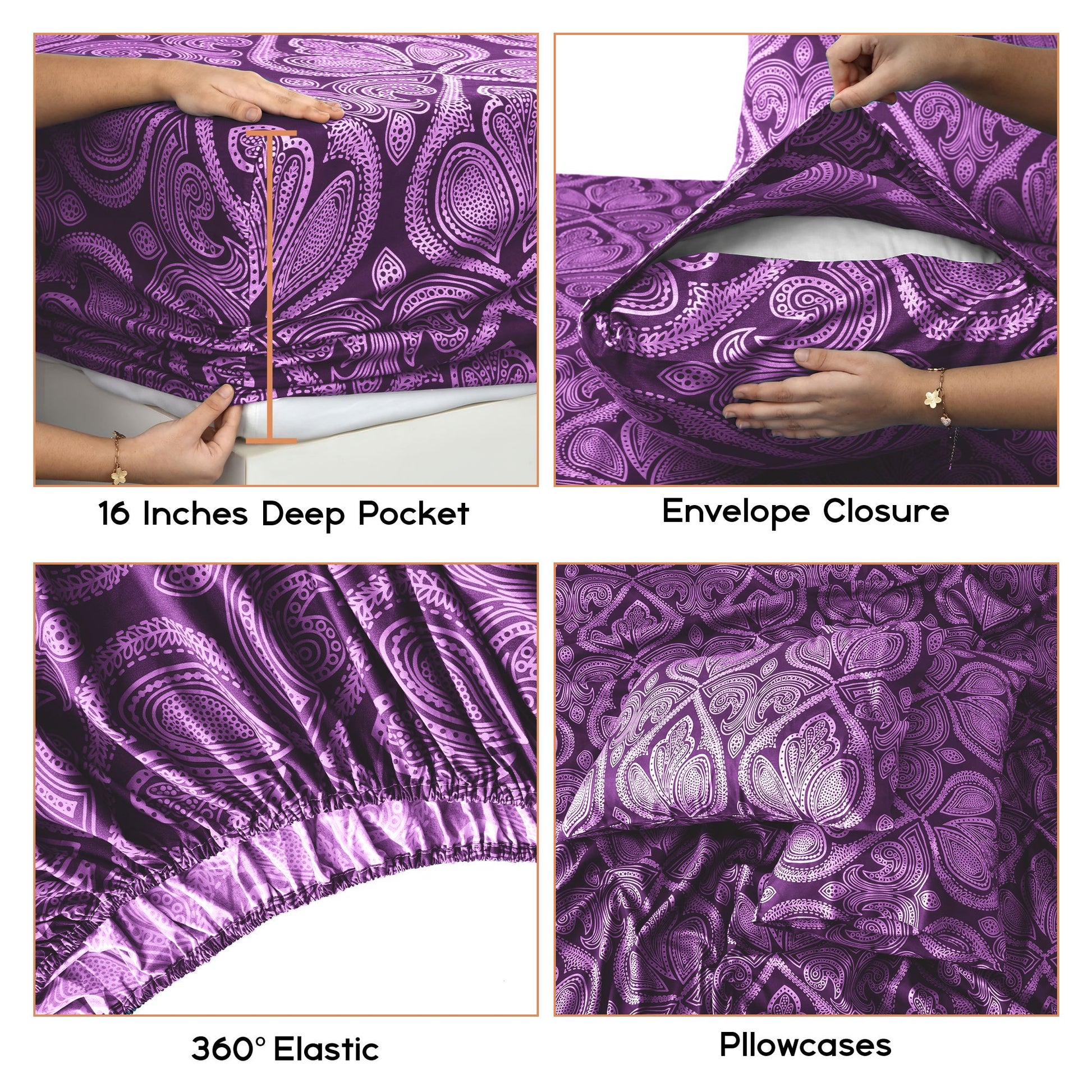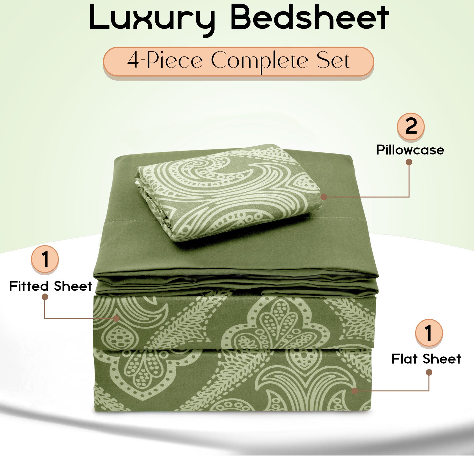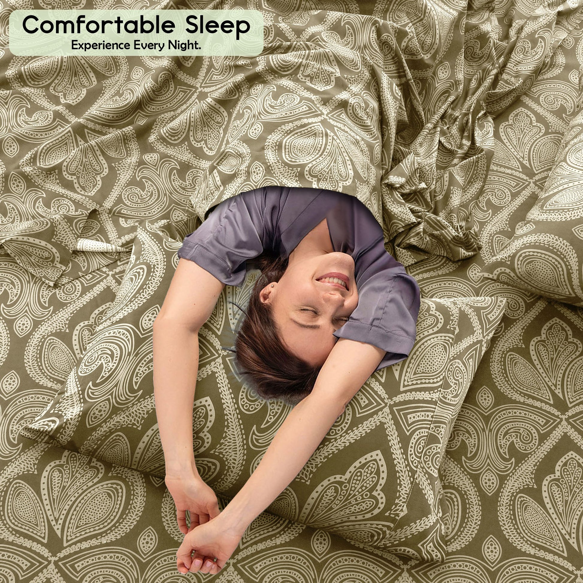 Lux Decor 6 Pieces Paisley Bed Sheet, Breathable Hotel Style Sheets, Microfiber Sheets Deep Pockets, Easy-Fit, Soft & Wrinkle Free Oeko-Tex Cooling Bed Sheets