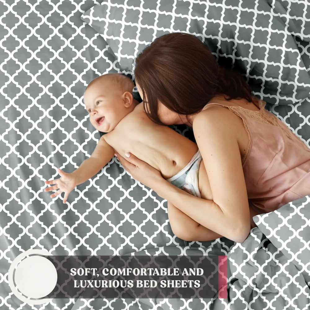 Luxurious Queen Size Bed Sheet Set - 4pcs Microfiber with Deep Pockets, Includes Flat Sheet & Pillowcases - Soft, Breathable Gray & White Striped Design for All Seasons