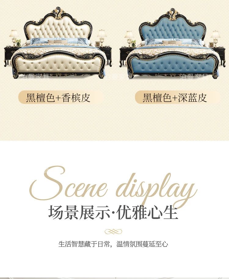 Luxury Couple Bed European Aesthetic Leather Queen Size Princess Bed Storage Space Cama De Casal Luxuosa Modern Furniture