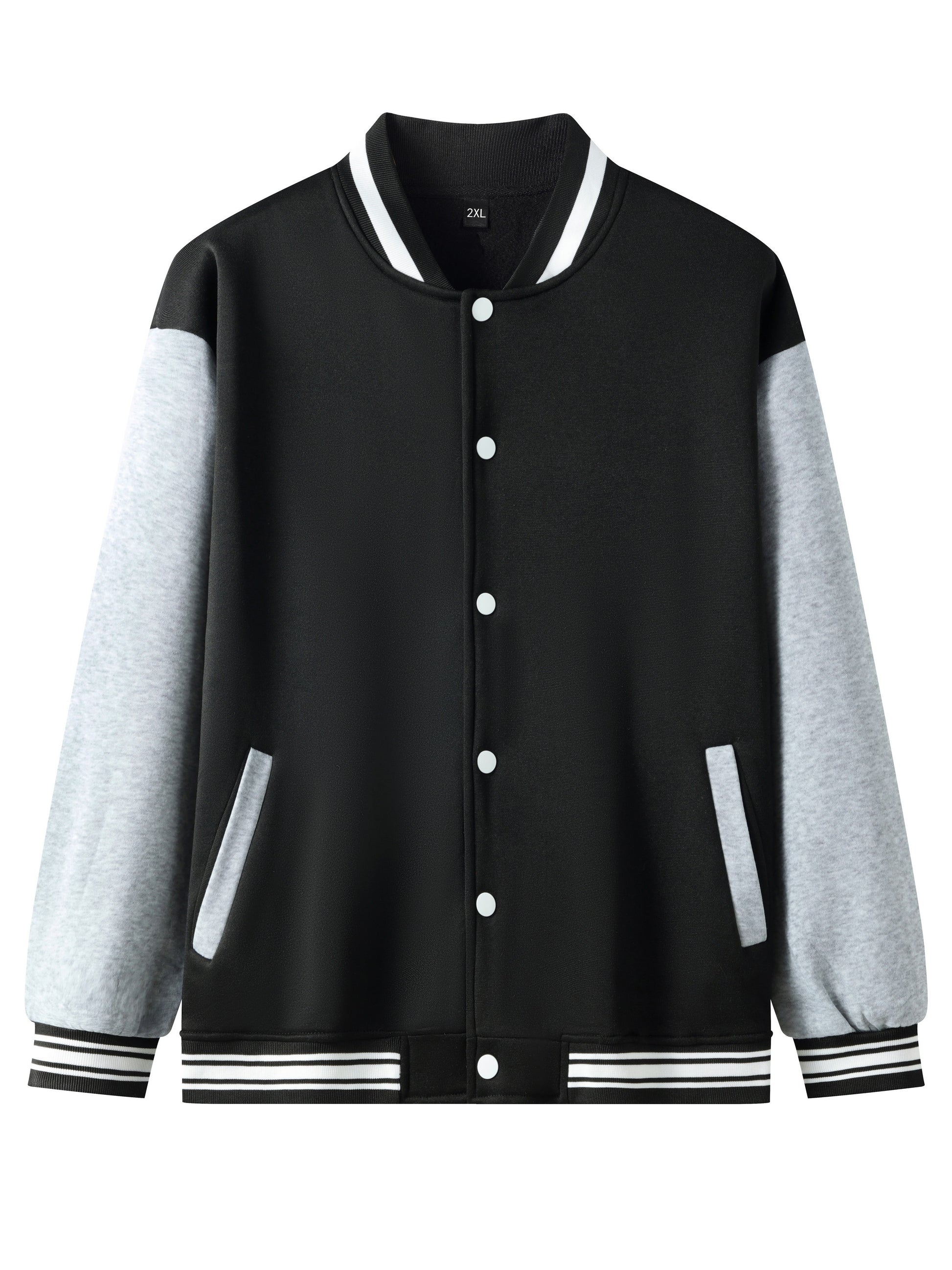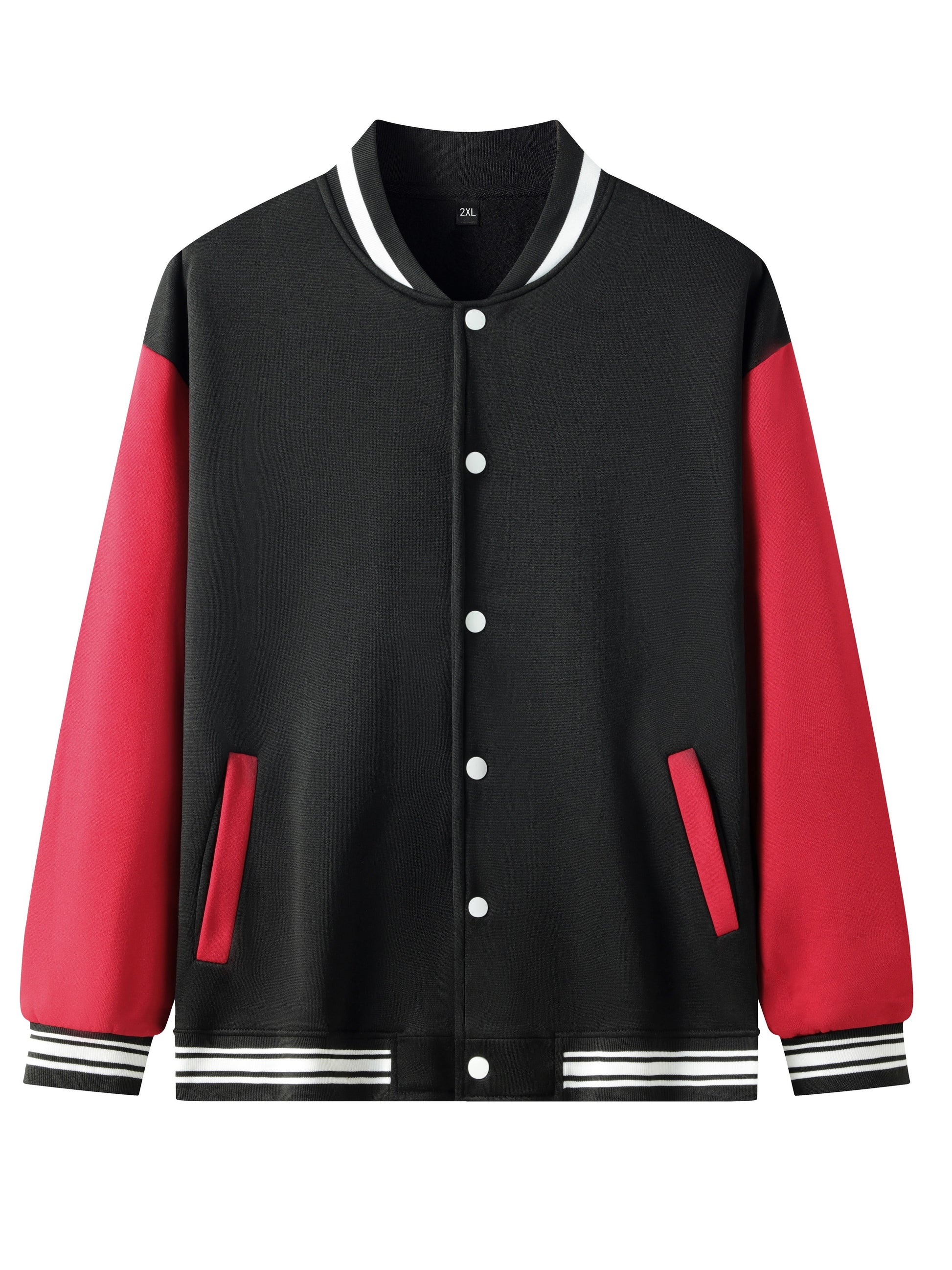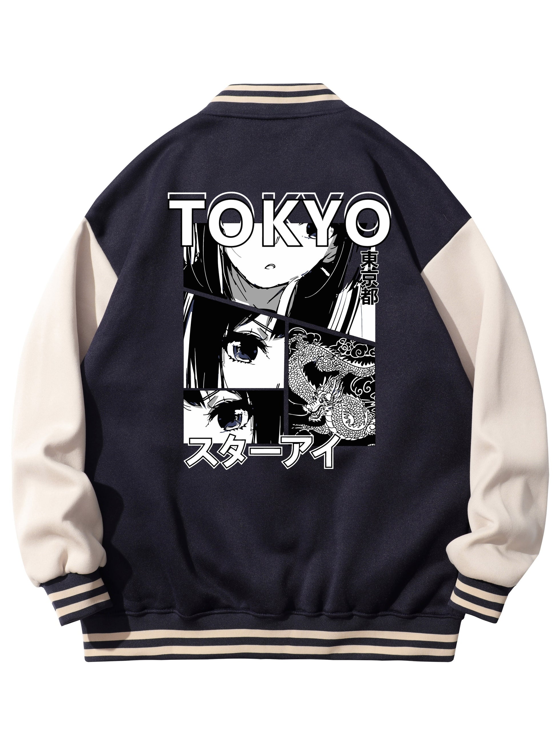 Men's Anime Portrait Embroidered Varsity Jacket - Casual Color Block Button Up for Spring and Fall Baseball and School