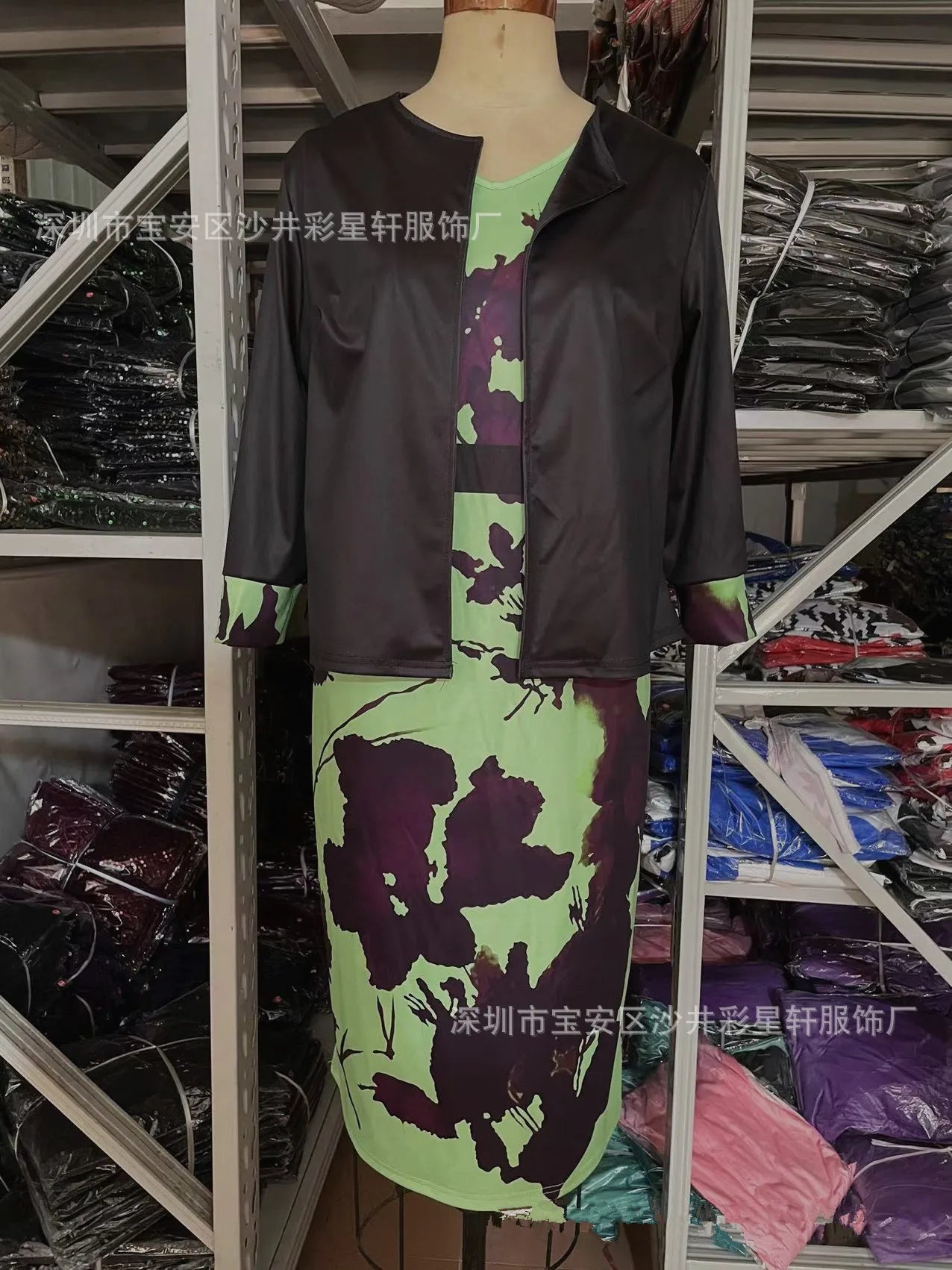 New Women Dress Sets Elegant Print Floral Higt Waist Wrapped Hip Dress and Solid Color Cardigan Tops 2 PCS Suit Office Lady Sets