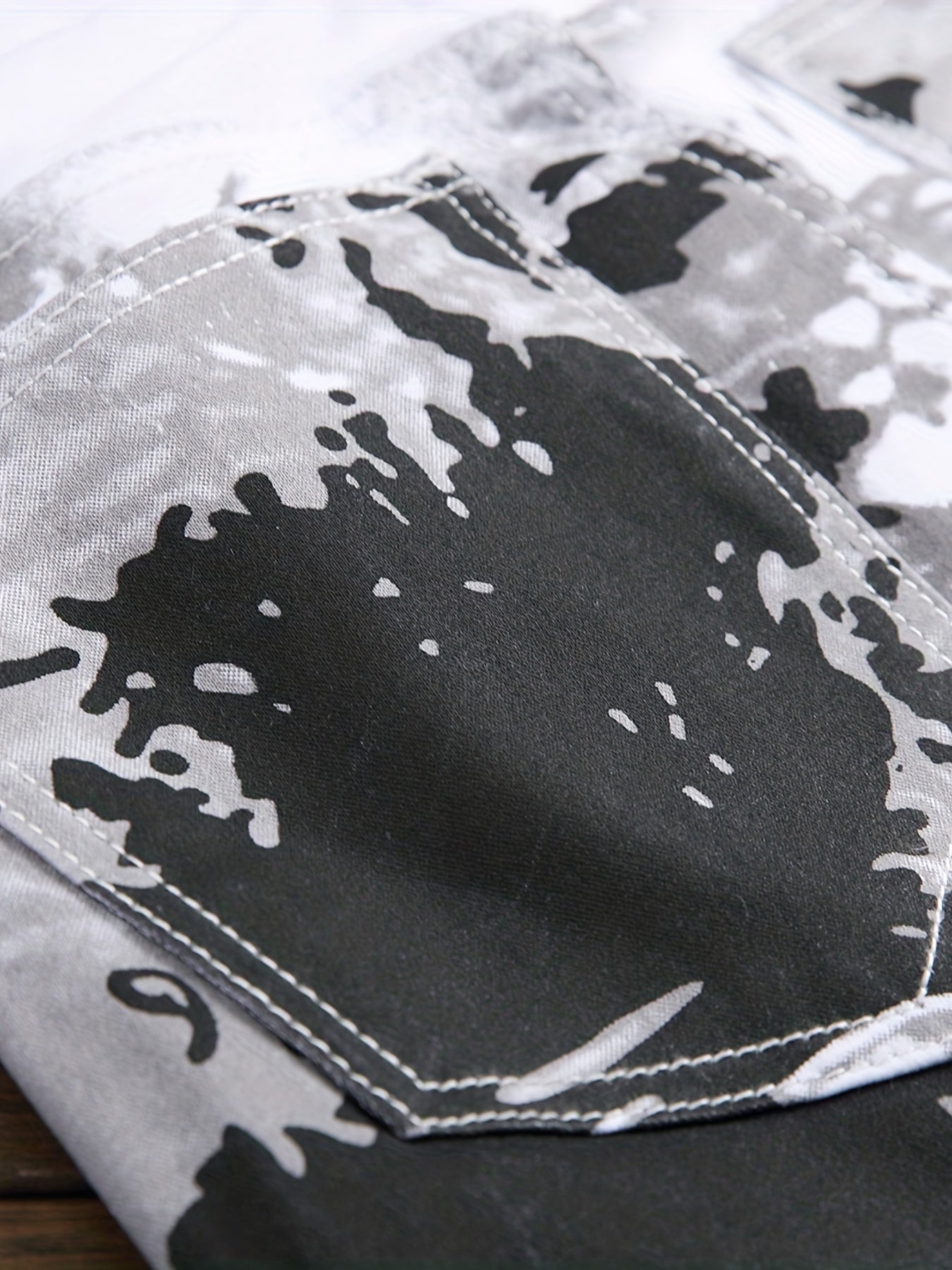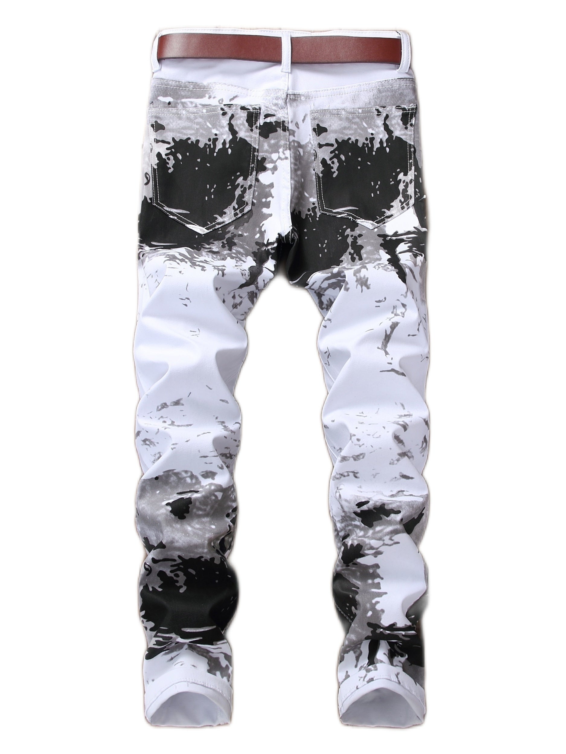 Slim Fit Creative Pattern Print Denim Jeans for Men, Stylish Leisure Pants for All Seasons