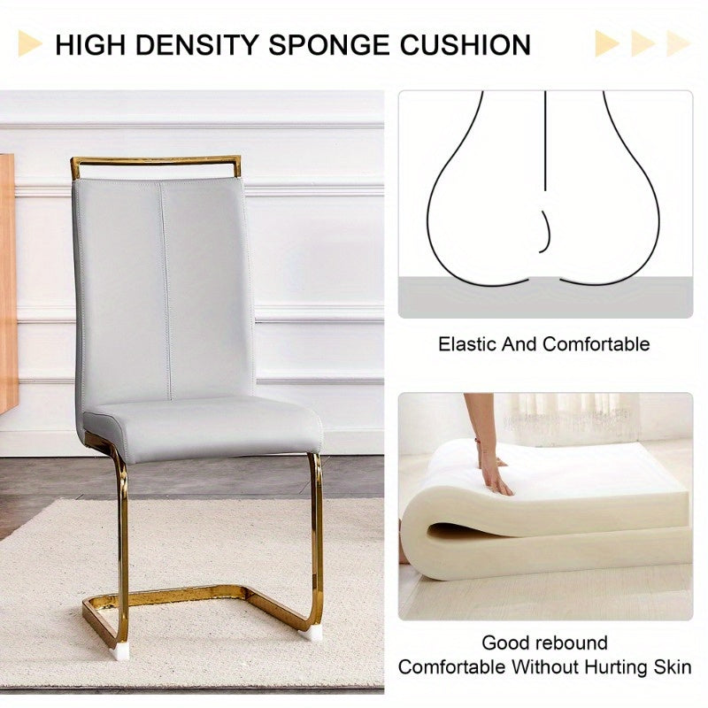Table and chair set, Modern rectangular table with 0.4 inch black patterned tabletop and Golden legs, suitable for kitchen, dining room, and living room, Comfortable PU seats, perfect for dinner, meet
