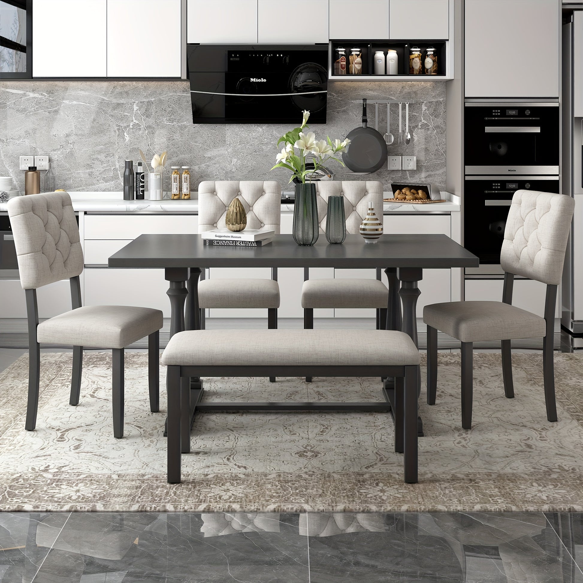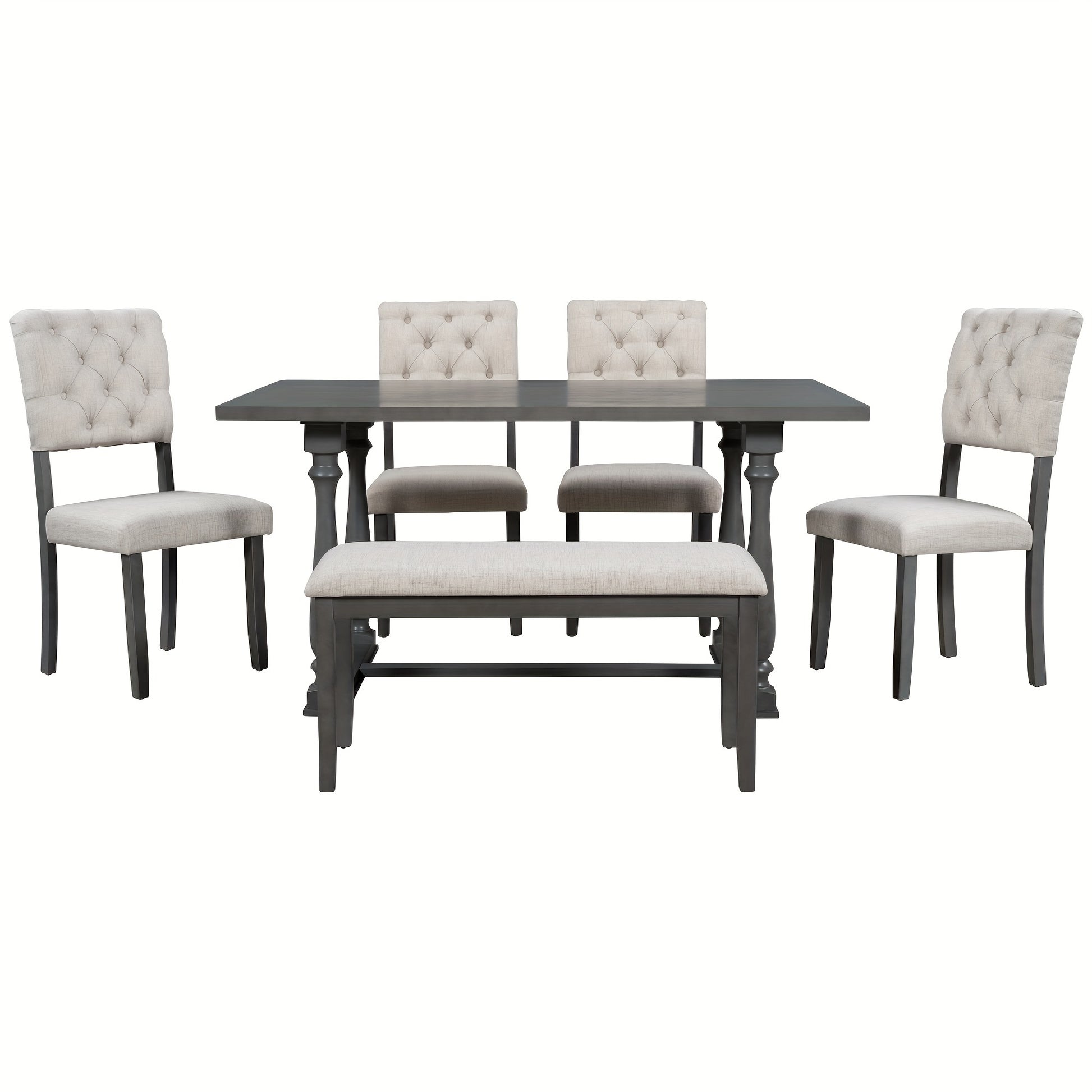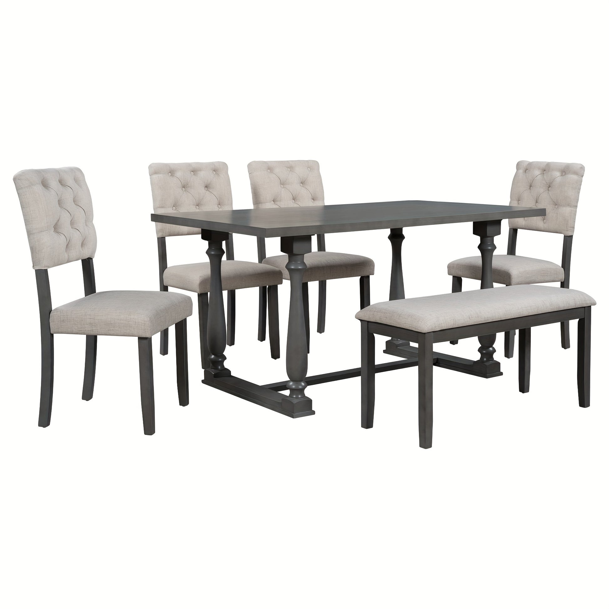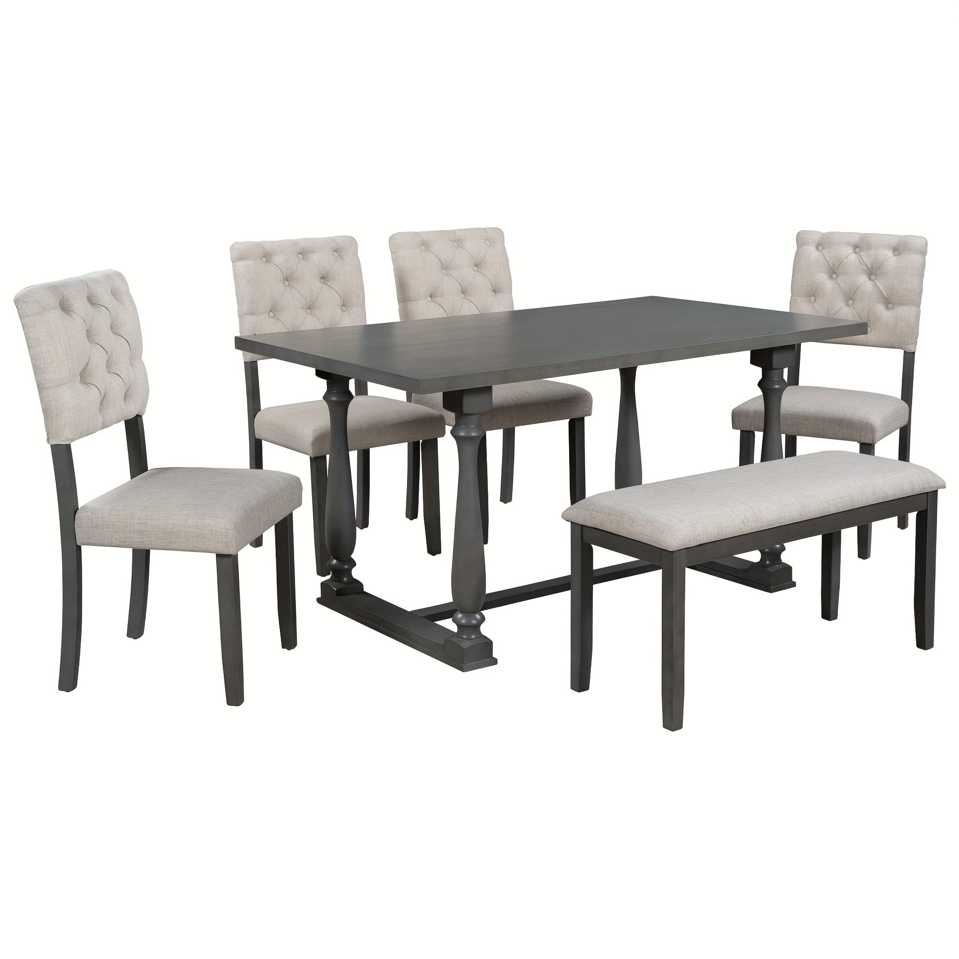 TREXM 6-Piece Dining Table And Chair Set With Special-shaped Legs And Foam-covered Seat Backs&Cushions For Dining Room (Gary)