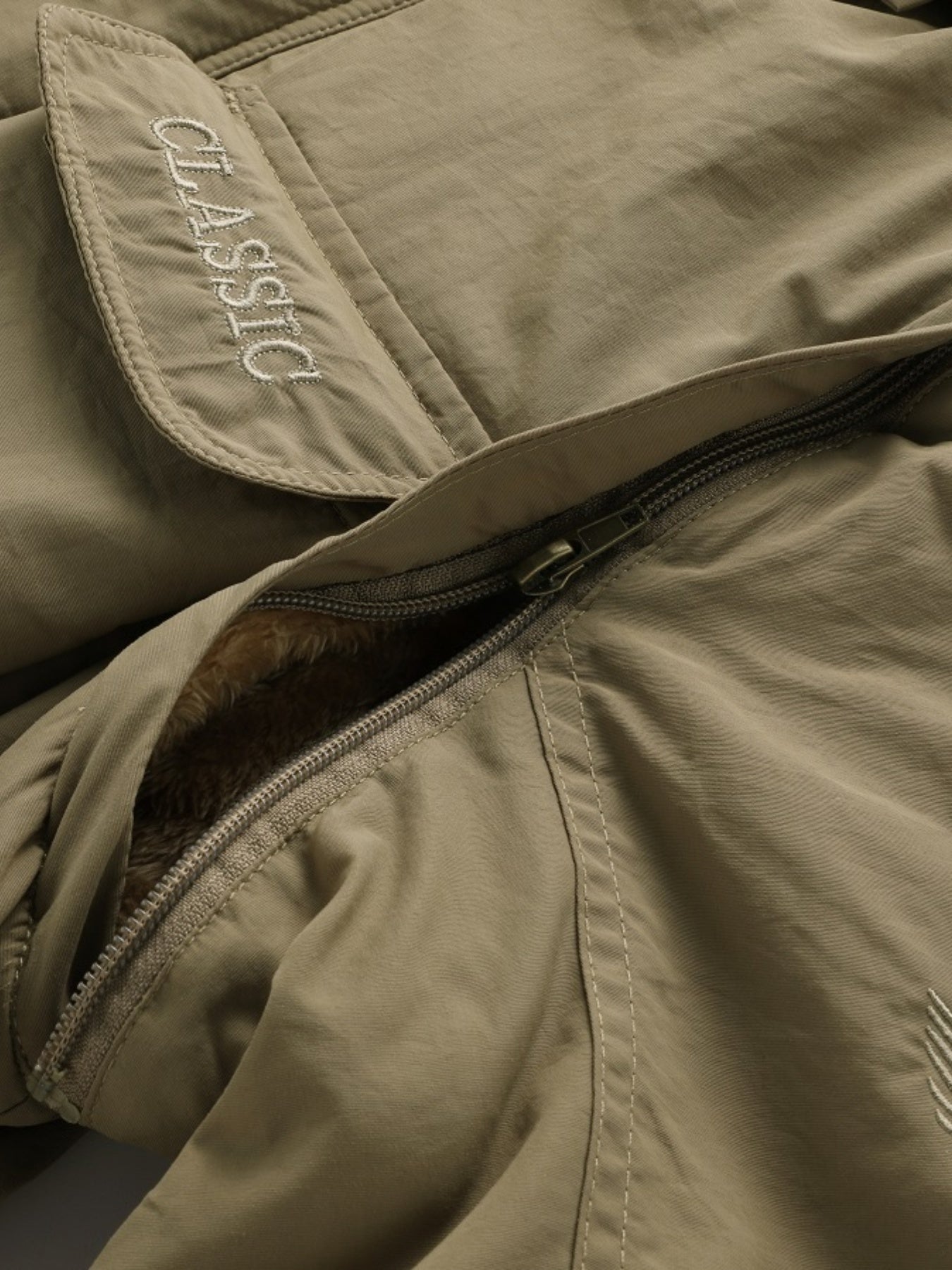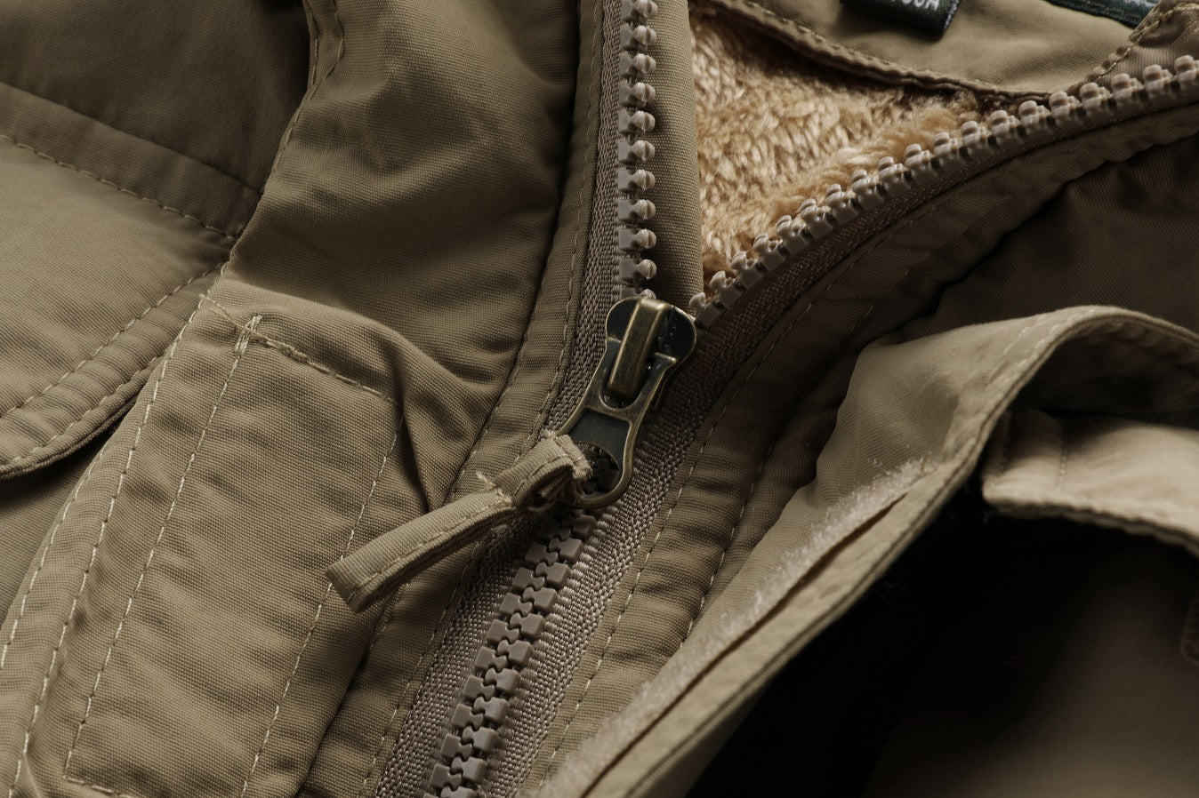 WarmthMax Cargo Jacket for Men - Fleece Lined, Removable Hood, Military Style, Water Resistant, Breathable, and Adjustable Fit for Outdoor Activities