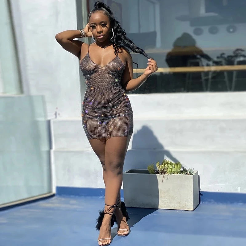 Women Slim Dresses Ladies Dress Summer Sexy Deep V-neck Sleeveless Straight Fashion New Party Casual Dresses Sexy & Club Mini