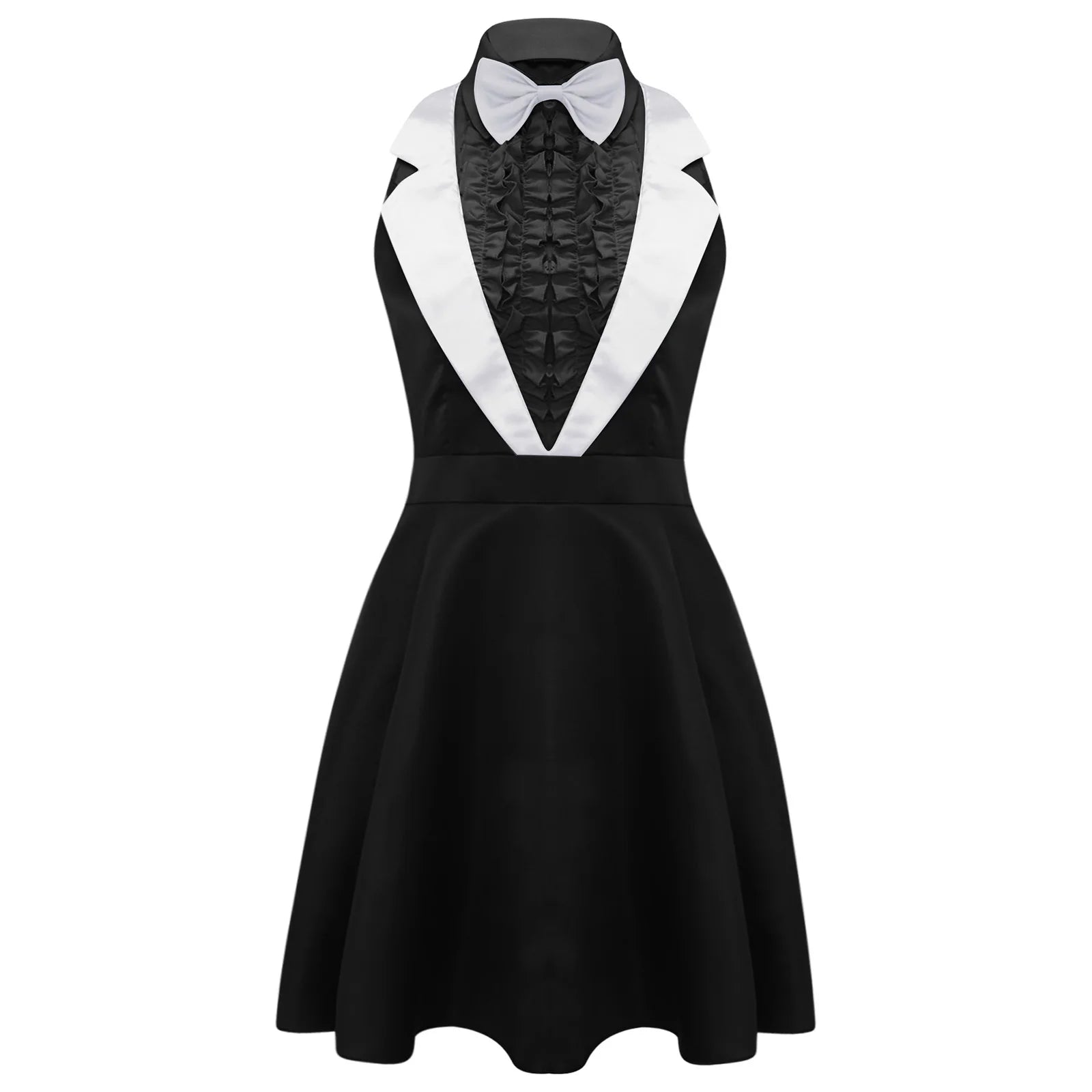 Women Halloween 70s 80s Dumber Cosplay Dress And Bowties: Ruffled Chest A-line Dress for Dress-up Party Raves Uniforms