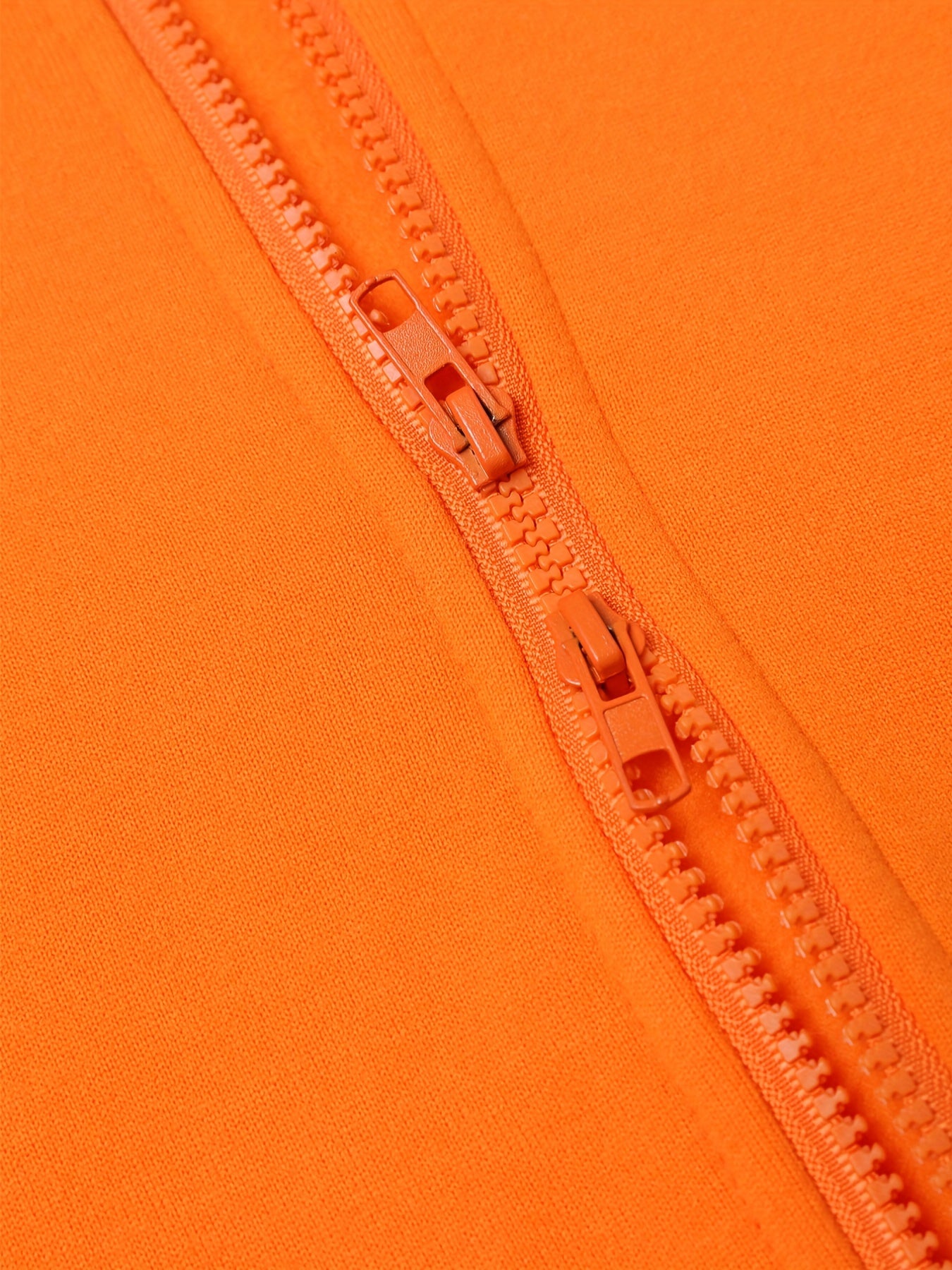 Women's Bright Orange Hooded Zip-Up Jacket with "SOMETHING for JUDY" Back Print - YOUNG Style Mid-Stretch Machine-Washable Spring/Fall Outerwear